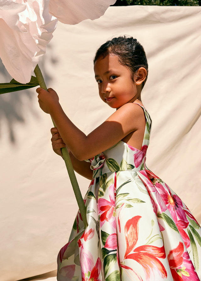 Abito cerimonia spalla larga fantasia Ragazza – Abel & Lula