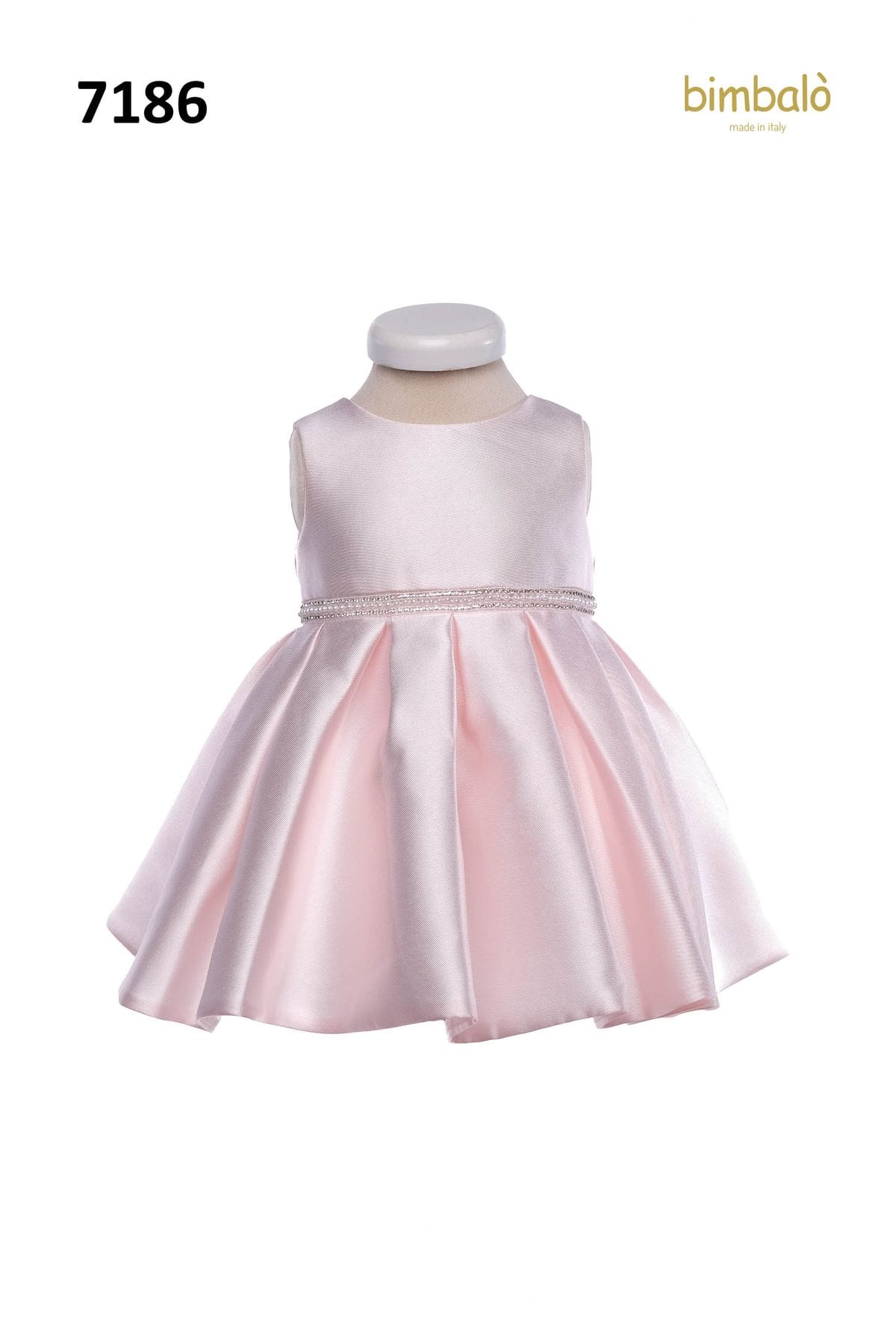 Abito cerimonia spalla larga fiocco dietro cinta perle Neonata – Bimbalo’