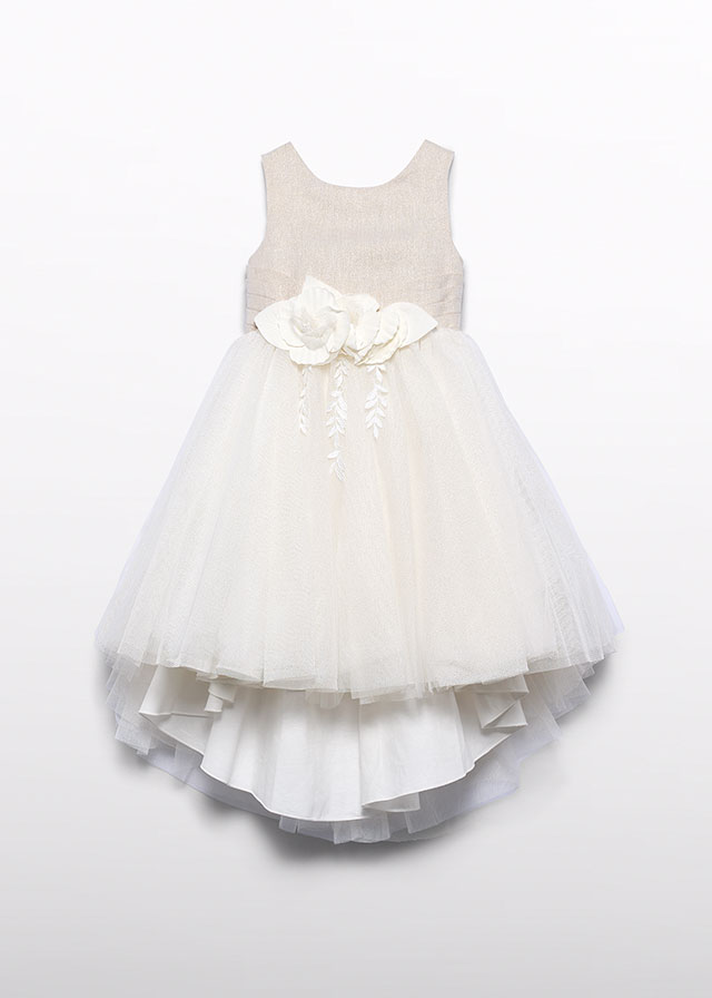 Abito cerimonia spalla larga tulle e coda Ragazza – Abel & Lula