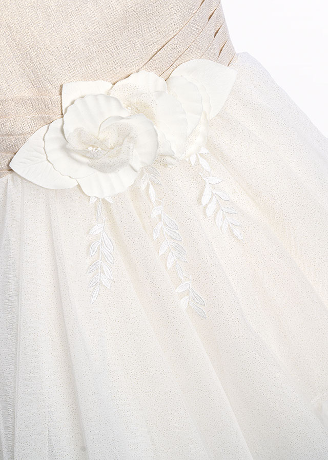 Abito cerimonia spalla larga tulle e coda Ragazza