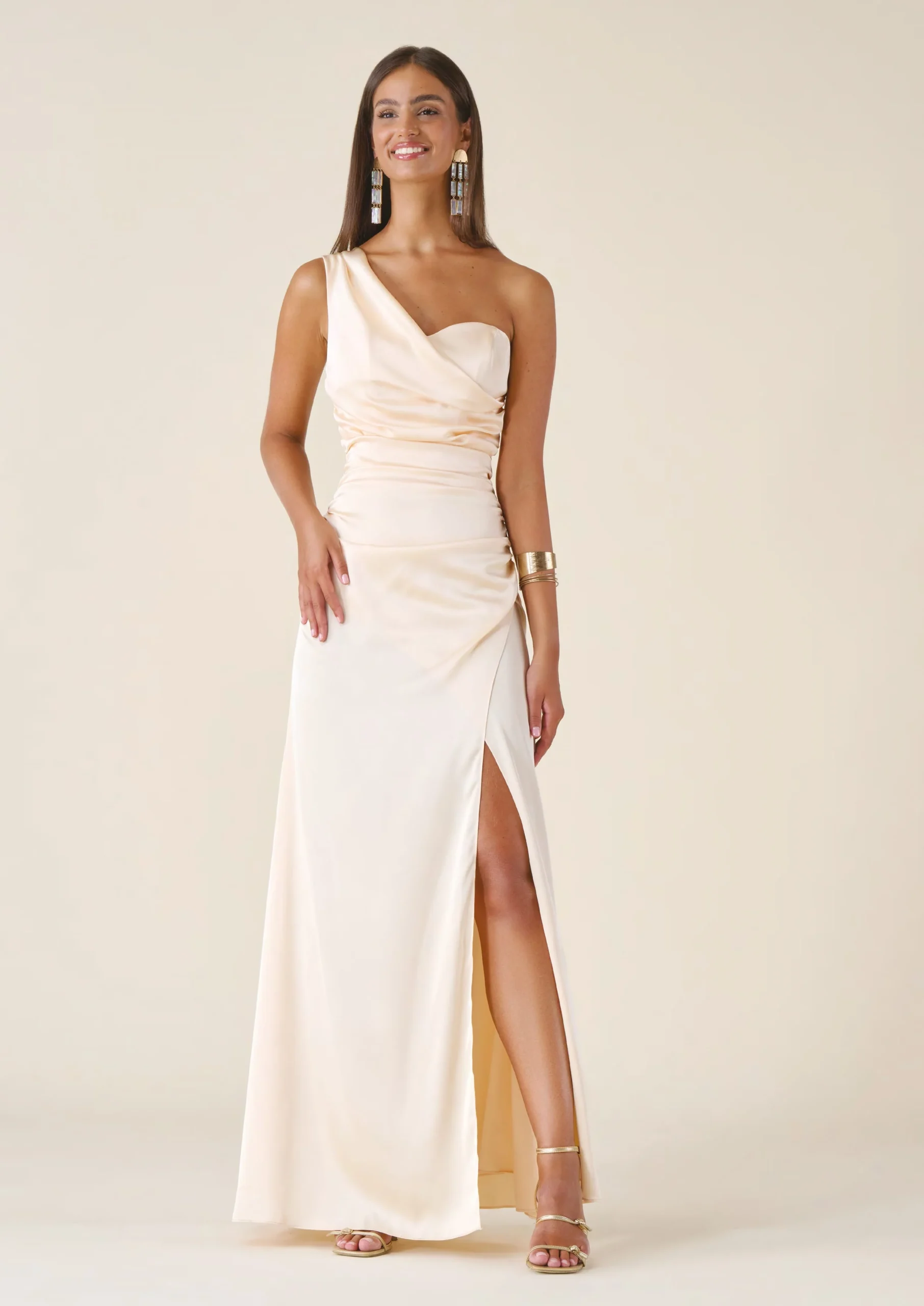 ABITO MONOSPALLA IN RASO CON SPACCO