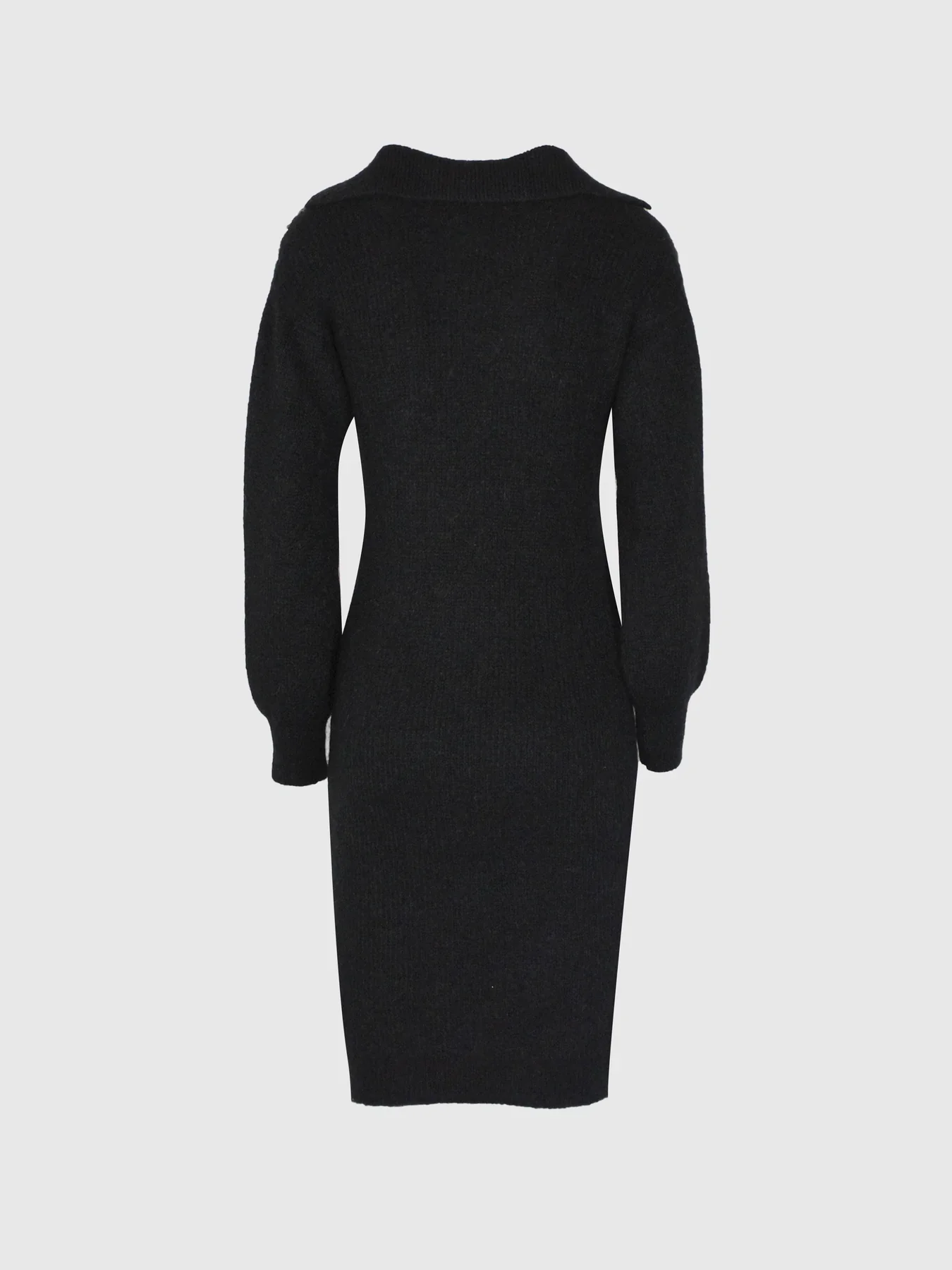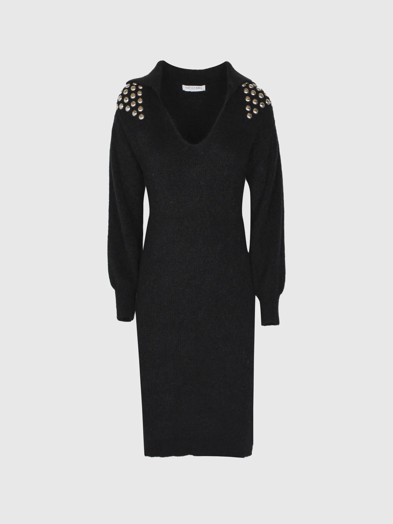 Abito realizzato in misto lana, che assicura una vestibilitร aderente. Il modello presenta un classico colletto a polo, maniche lunghe e un orlo dritto reso piรน rock da una decorazione di borchie premium quality sulle spalle.