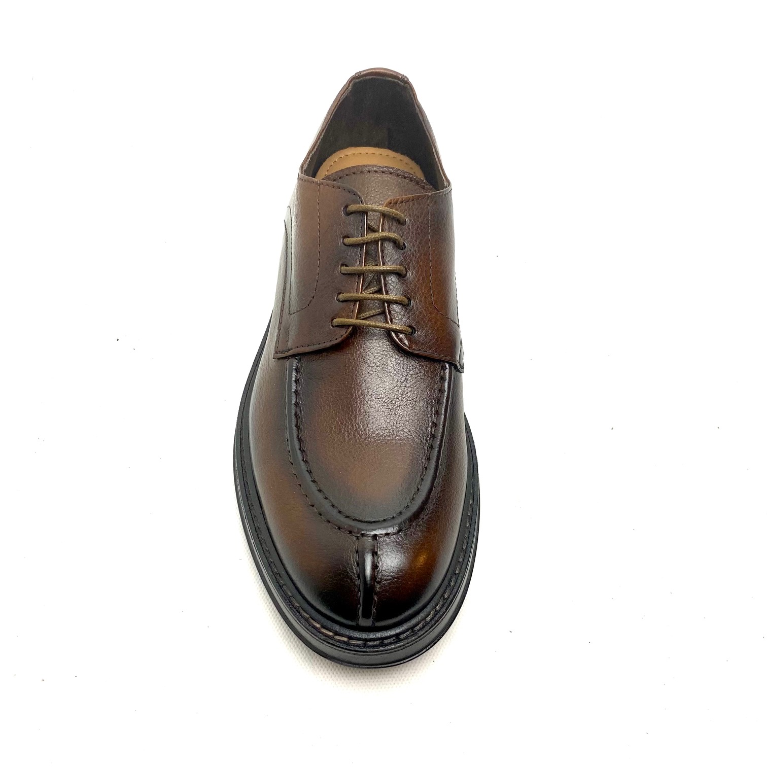 Scarpa allacciata a 5 fori in pelle di bufalo color sella, fodera pelle e sottiede soft. Fondo clipper in gomma h cm 1