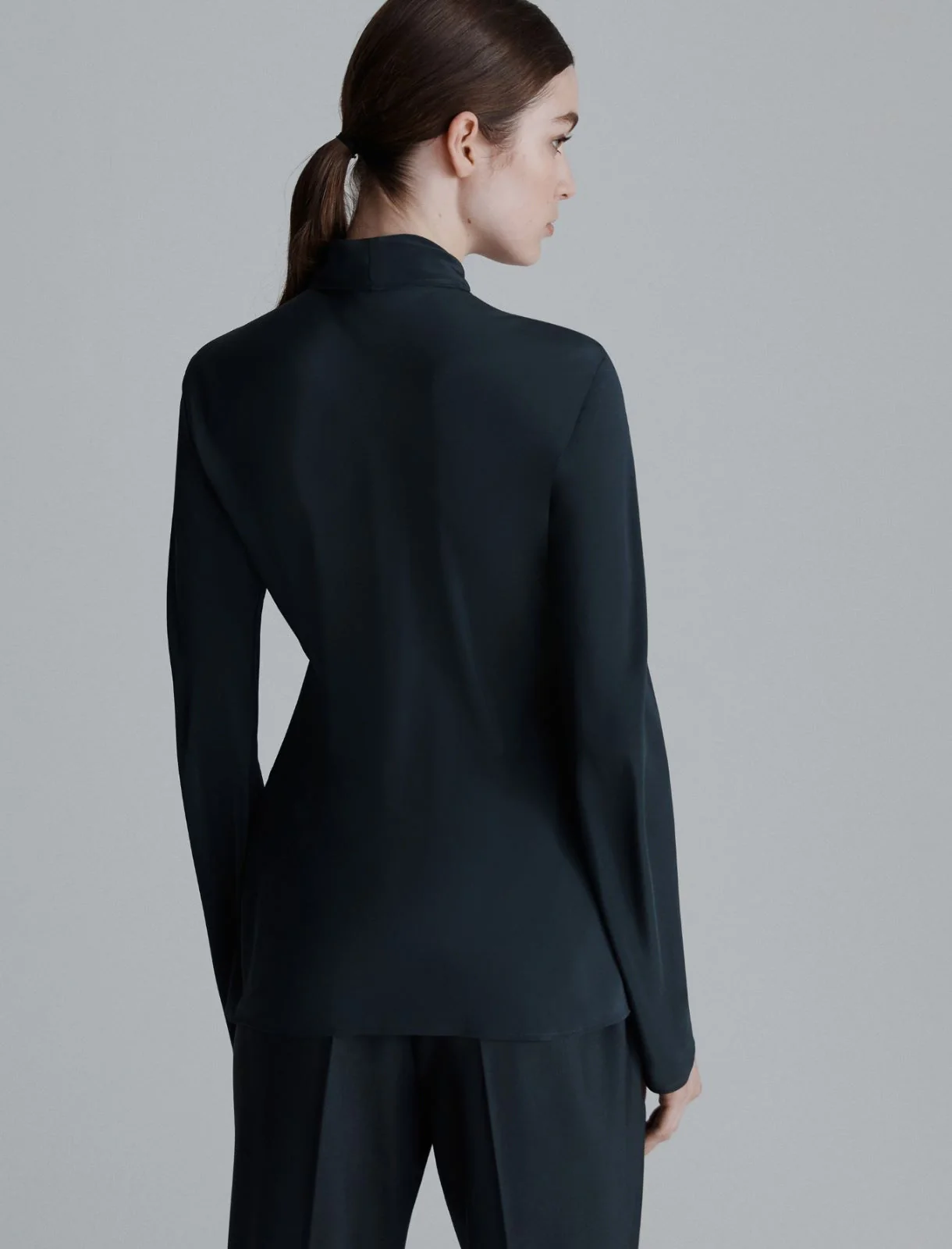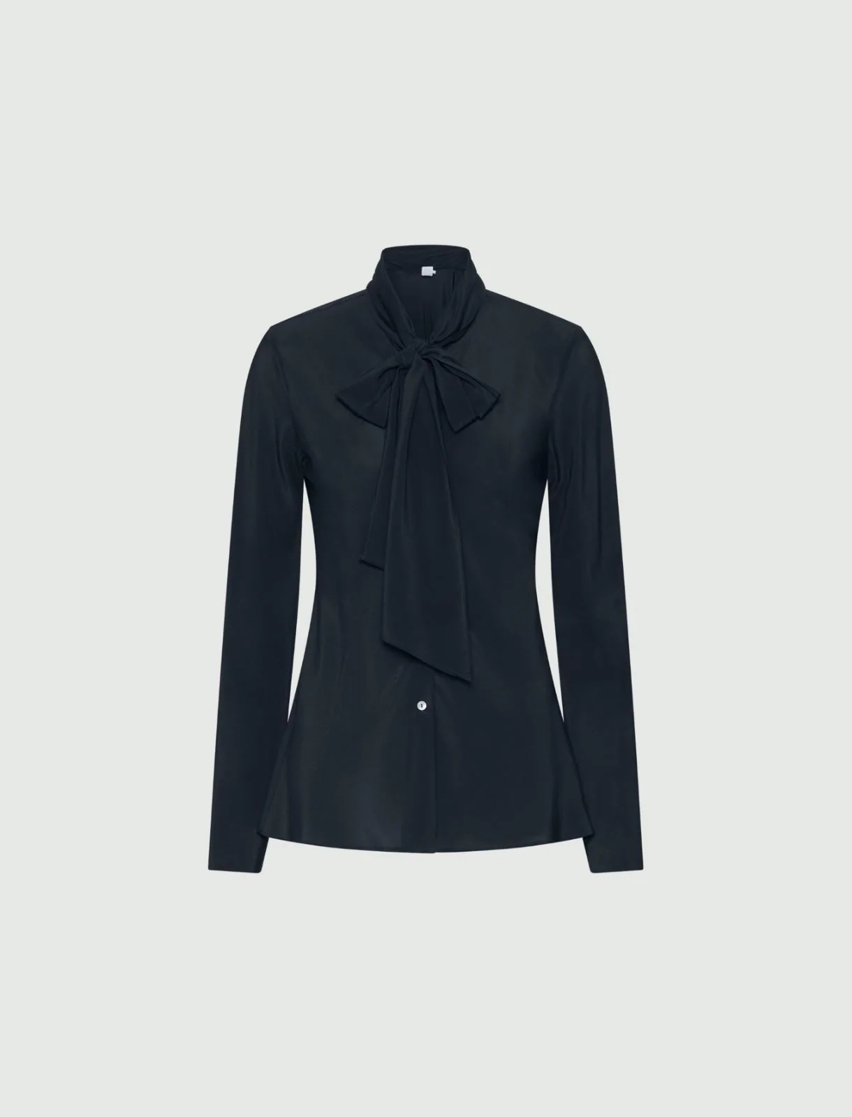 Il morbido fiocco al collo aggiunge una nota romantica a questa camicia in pura seta. Intensa nelle nuance, elegante con pantaloni e maglieria dalle forme attuali.