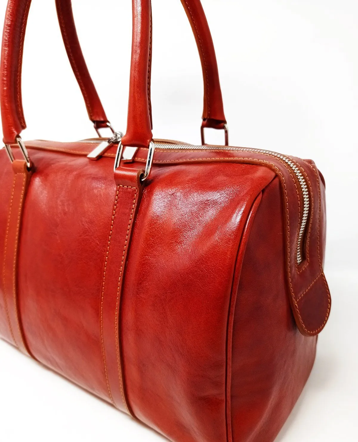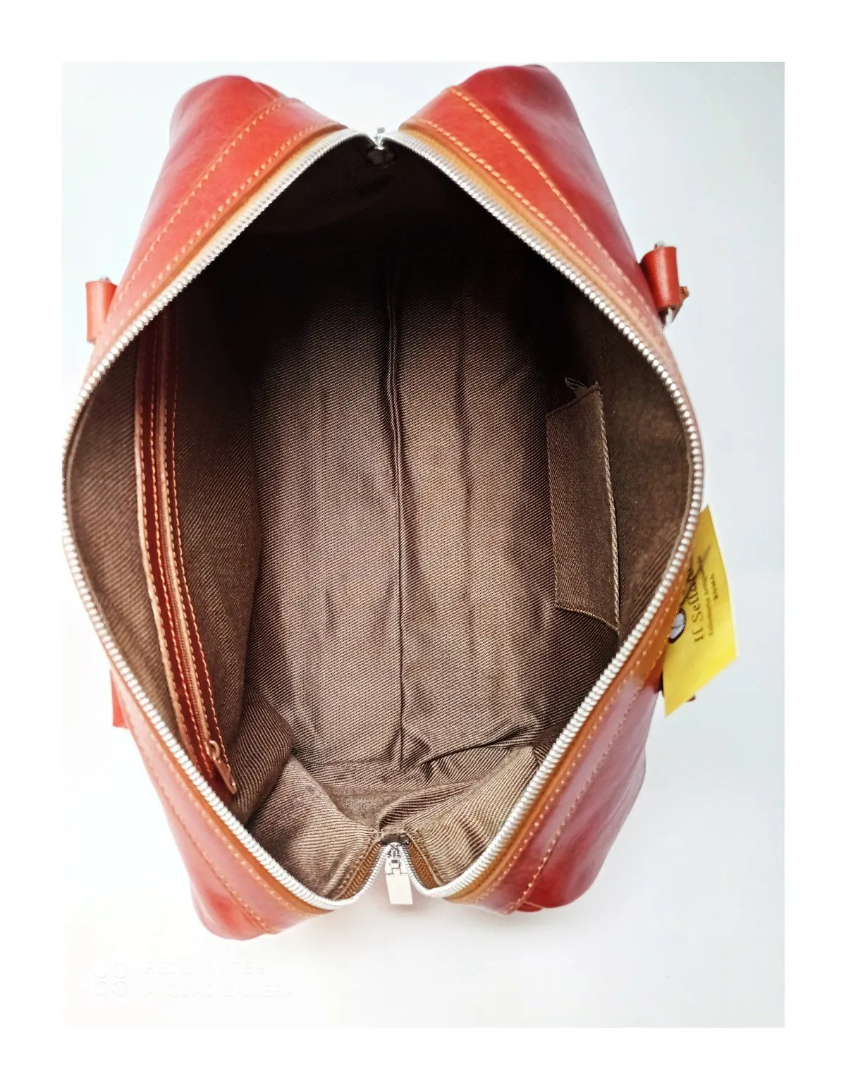 Il Bauletto da donna realizzato interamente a mano in cuoio conciato al vegetale si distingue per le linee emblematiche e per la taglia oversize con la comoda lampo che scende sul fianco per permettere una comoda apertura è un accessorio femminile immancabile, pratico ed essenziale si distingue per l’unicità della pelle tinta con tannini vegetali. Internamente è rifinita con un cotone pesante marrone, e possiede sia un’ampia tasca con zip ed un’altra tasca porta cellulare. Le finiture sono in metallo color silver (su richiesta si fanno in oro)