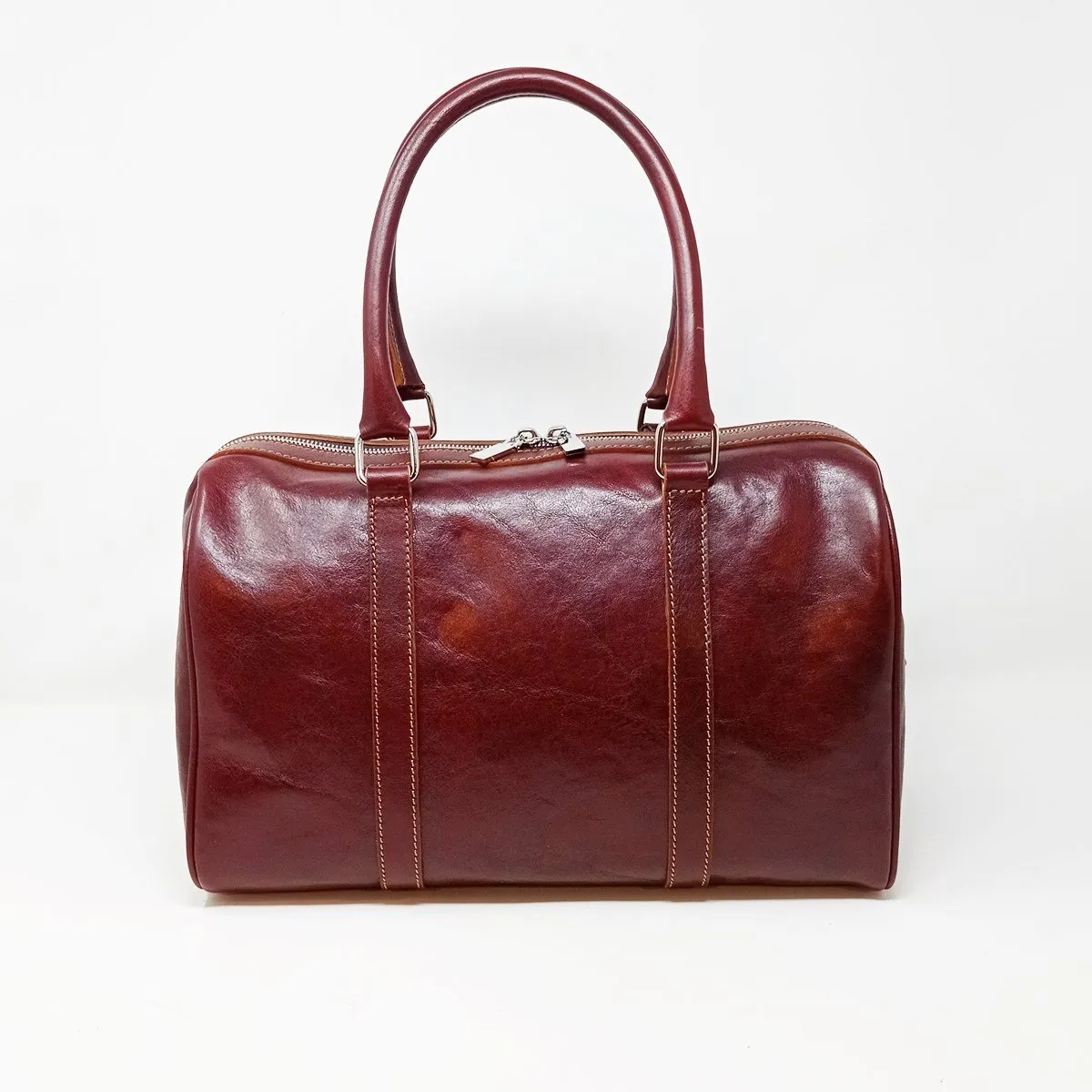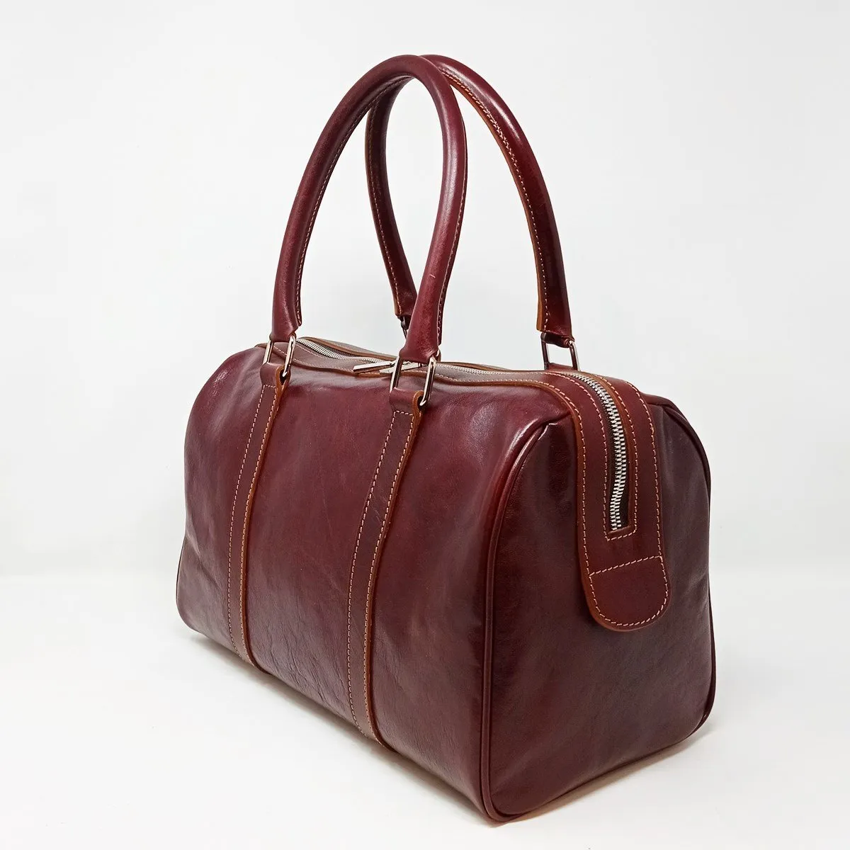 Il Bauletto da donna realizzato interamente a mano in cuoio conciato al vegetale si distingue per le linee emblematiche e per la taglia oversize con la comoda lampo che scende sul fianco per permettere una comoda apertura è un accessorio femminile immancabile, pratico ed essenziale si distingue per l’unicità della pelle tinta con tannini vegetali. Internamente è rifinita con un cotone pesante marrone, e possiede sia un’ampia tasca con zip ed un’altra tasca porta cellulare. Le finiture sono in metallo color silver (su richiesta si fanno in oro)
