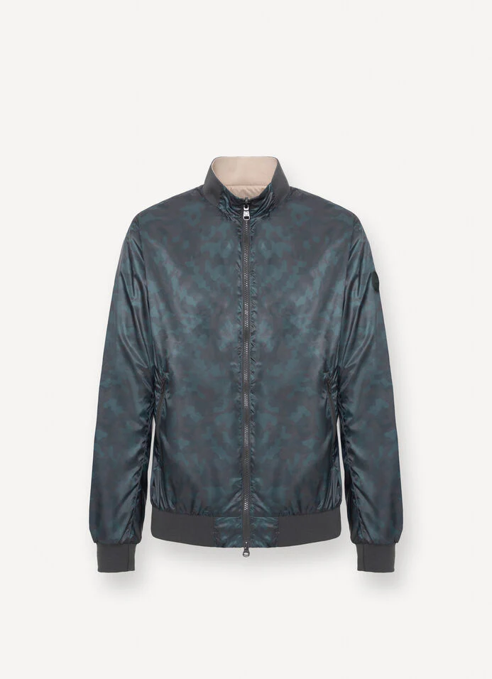 Giacca reversibile da uomo realizzata in tessuto opaco ultraleggero. Due capi in uno per il modello bomber con fondo, polsi e collo in maglia a costine. La possibilitร  di indossarlo da entrambi i lati, scegliendo la cromia preferita, camouflage o tinta unita, permette di cambiare look ogni volta che lo si desidera.