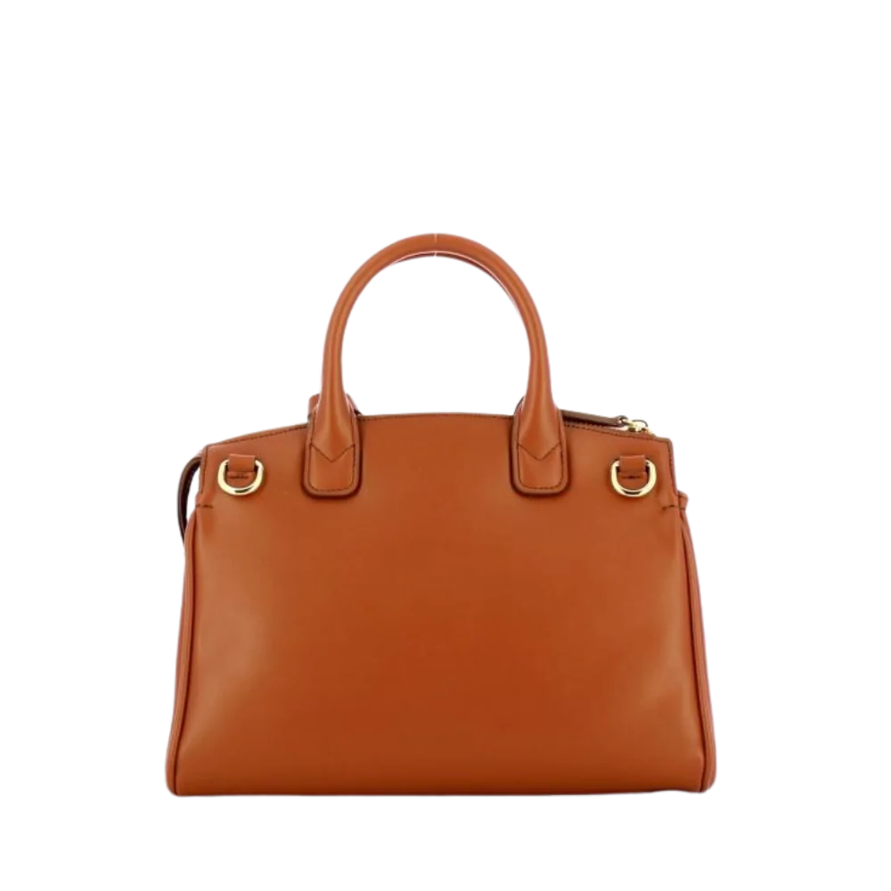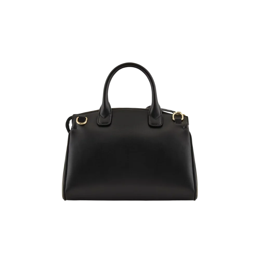 Eleganza e funzionalitร convivono in questa borsa a bauletto caratterizzata da forme contemporanee e da dettagli in metallo che le conferiscono uno stile femminile. Realizzata in materiale lucido รจ arricchita dal lucchetto pendente e presenta due manici, tracolla removibile, chiusura con zip e fodera logata.