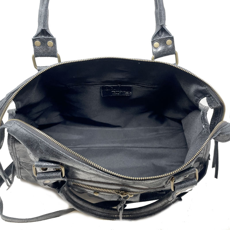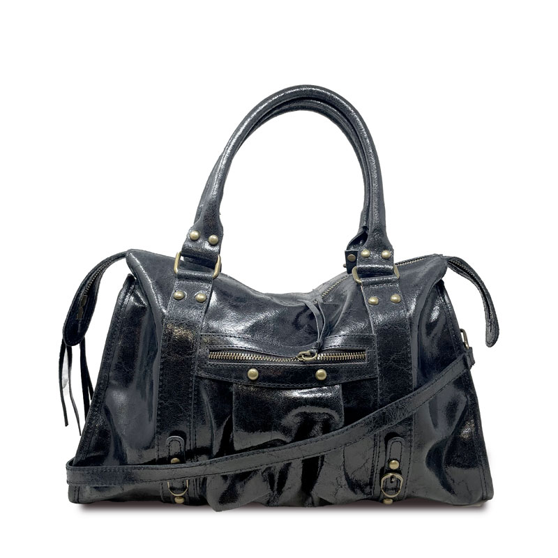 Borsa a mano grande in pelle spatolata con borchie – K073