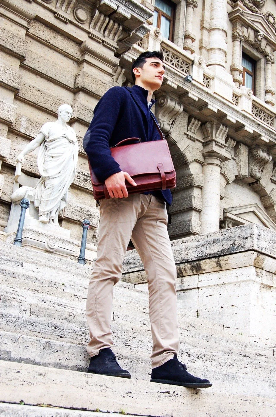 - Cartella Professionale uomo realizzata in vacchetta conciata al vegetale, ideale per contenere documenti A4, Fascicoli, e Laptop da 17 pollici.