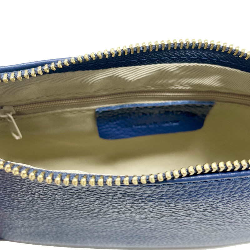Borsa a spalla piccola da donna. Misure 21x12x6 cm. Vera pelle 100% Made in Italy con rifiniture fatte a mano. Pendente metallico incluso con possibilitร di usarlo come portachiavi. Catena metallica 100 cm. Interno foderato in tessuto con singolo scomparto. Chiusura con zip centrale. Morbida, leggera e comoda, ideale per ogni occasione.