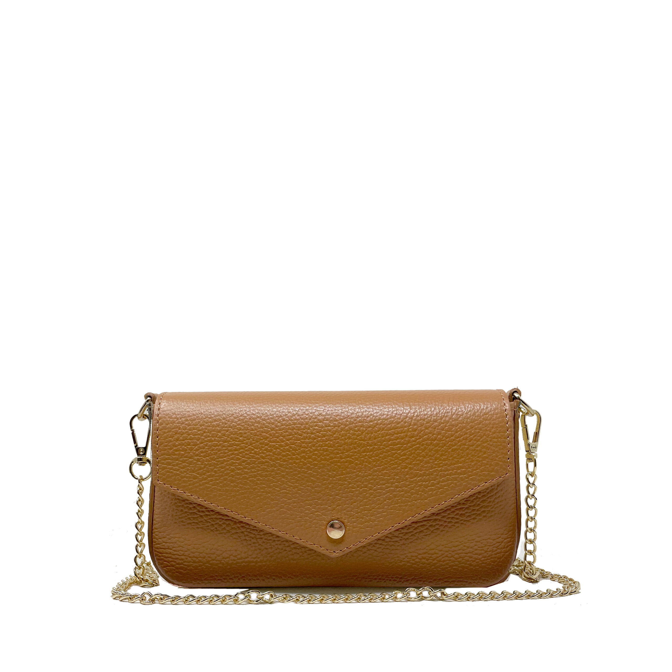 Borsa piccola a spalla o a mano. Chiusura con bottone centrale. Vera pelle dollaro Made in Italy. Misure 21x12x4ย cm Robusta tracolla con catena in dotazione removibile. Robusta tracolla in pelle removibile. Una tasca laterale, interno foderato. Morbida, comoda e leggera. Adatta per cerimonie e per tutte le stagioni e occasioni.
