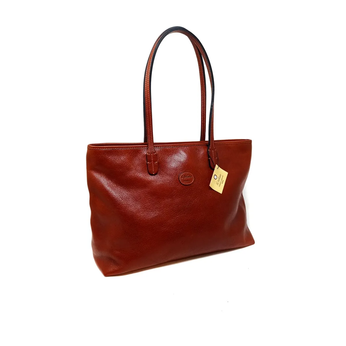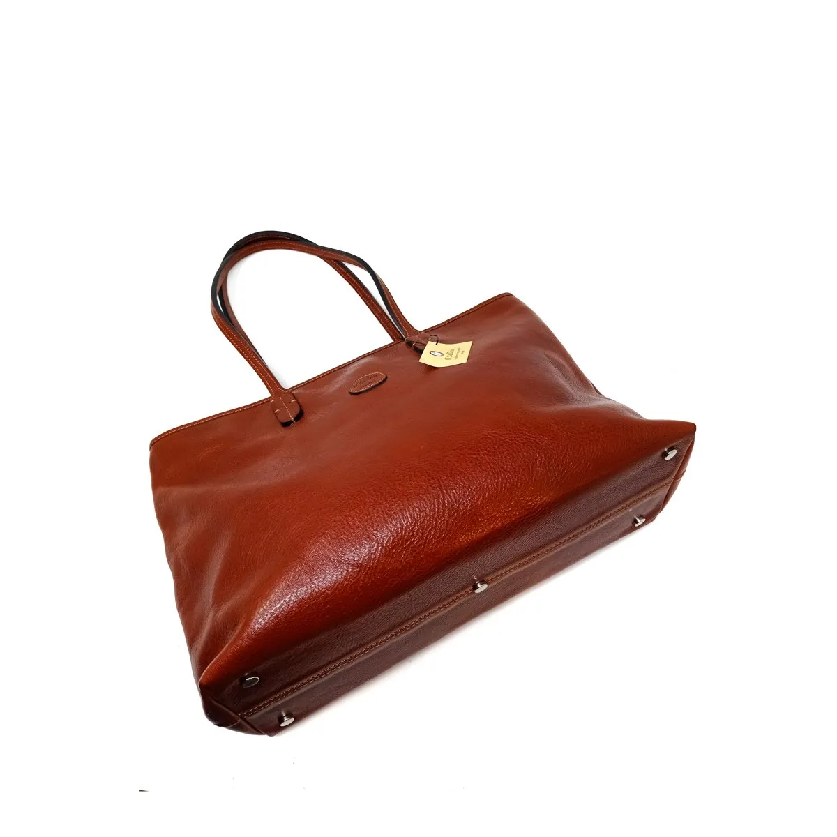 - Questa è una borsa adatta da mattina a sera per la donna dinamica che ama la praticità e la qualità , la shopper è realizzata in vacchetta conciata al vegetale, i manici sono cuciti a mano ed hanno una luce di cm. 25