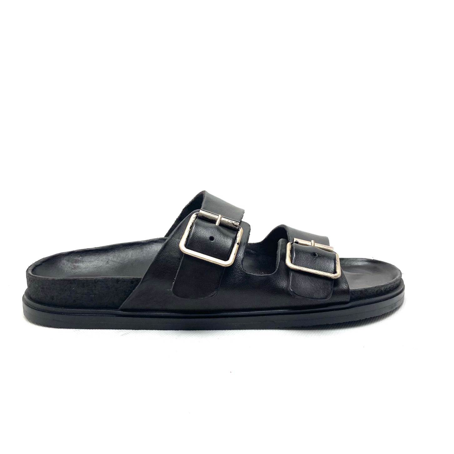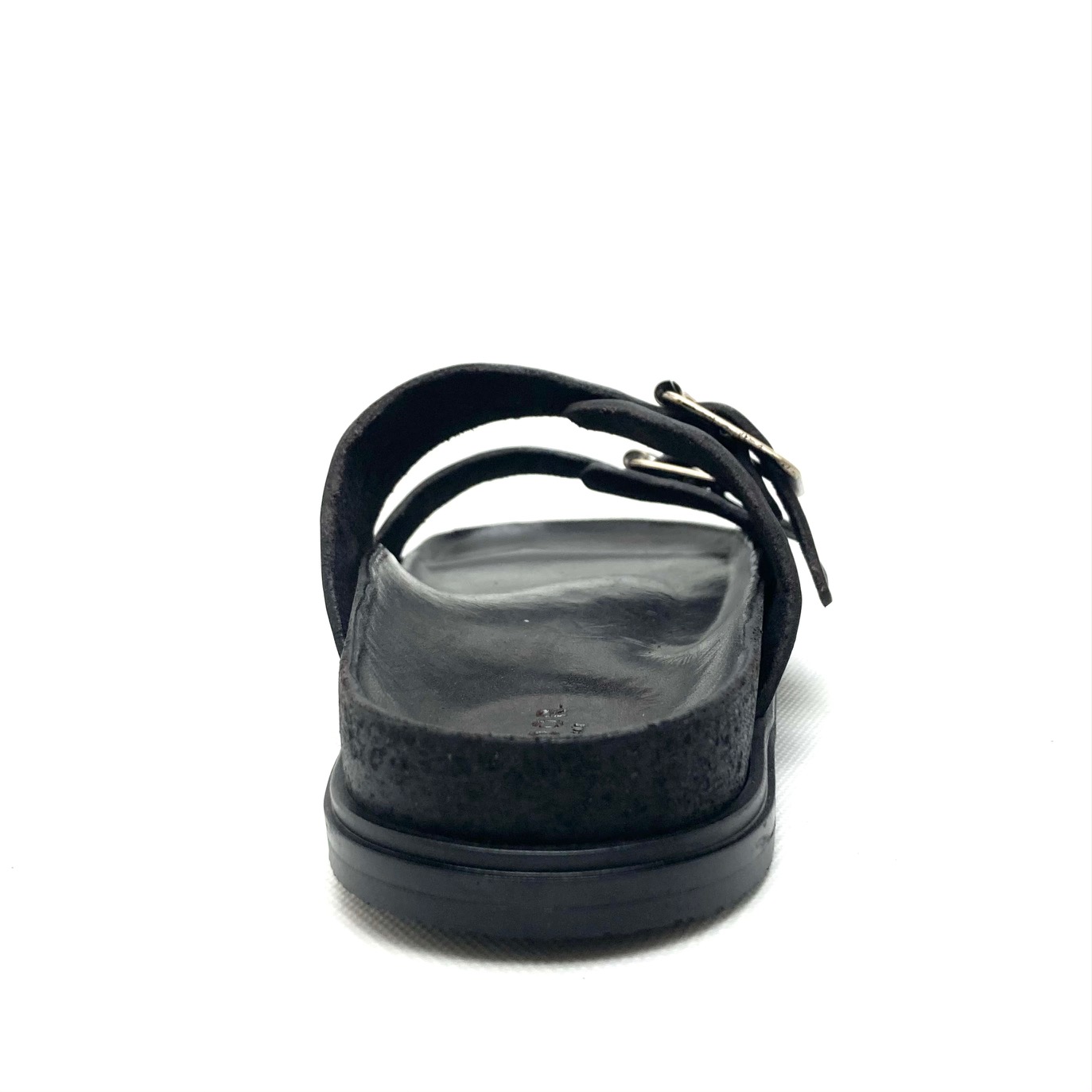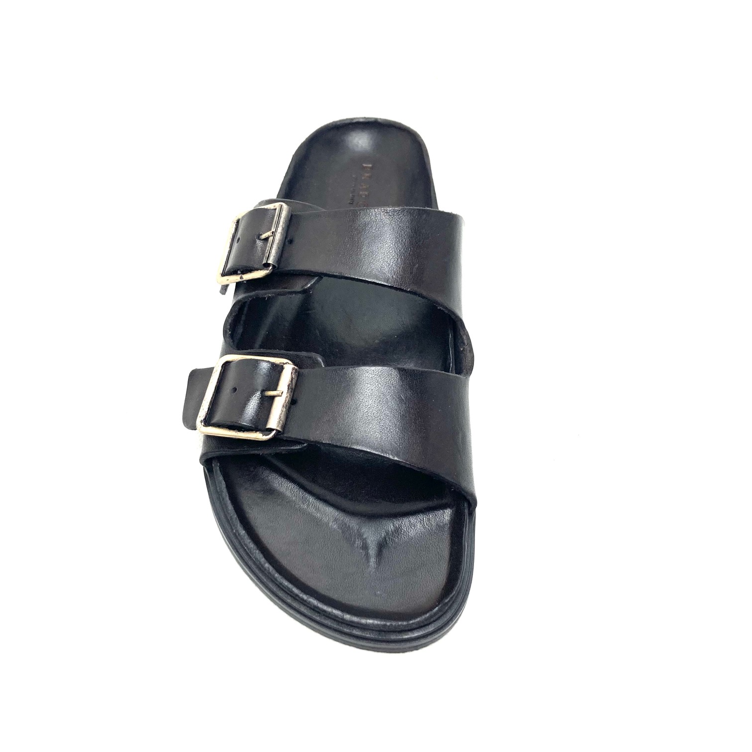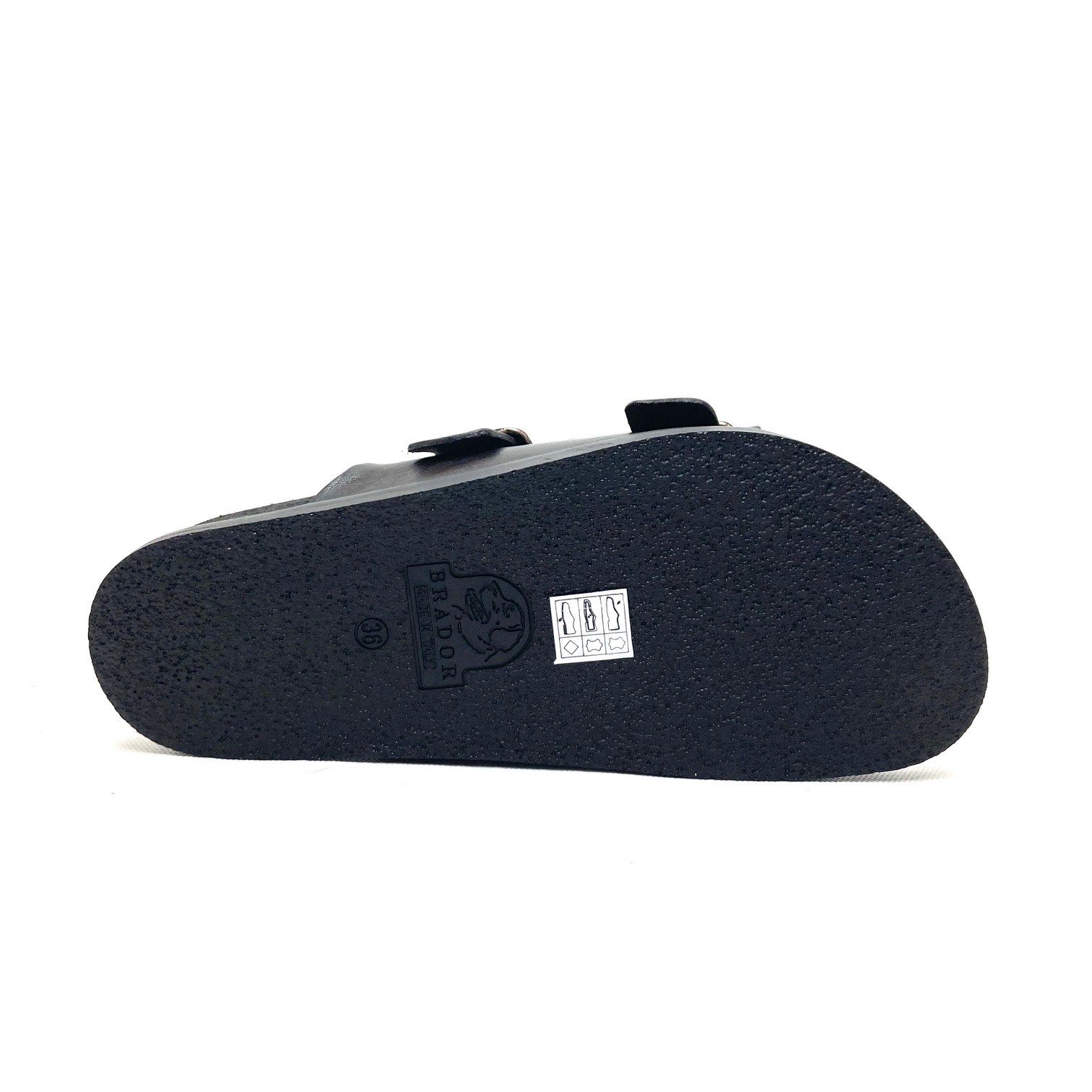 Brador ciabatta donna in vera pelle testa di moro tinto capo. Tomaia in pelle con doppia fascia regolabile da fibbia in argento anticato.. Sottopiede fusbett foderato in pelle e suola gomma . 100% Made in Italy.