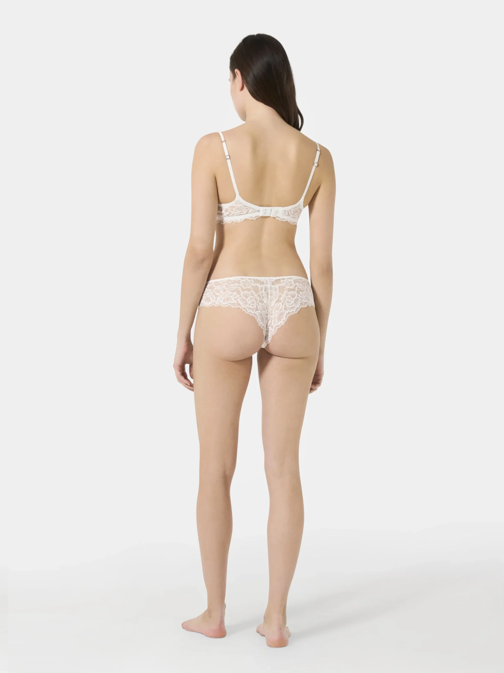 Brazilian in pizzo e raso di seta, pensato per unire sensualitร e comfort in un design raffinato. Il pizzo delicato disegna la silhouette con eleganza, mentre il raso di seta dona morbidezza e luminositร al capo. Una creazione sartoriale Made in Italy che esalta la femminilitร con stile contemporaneo.