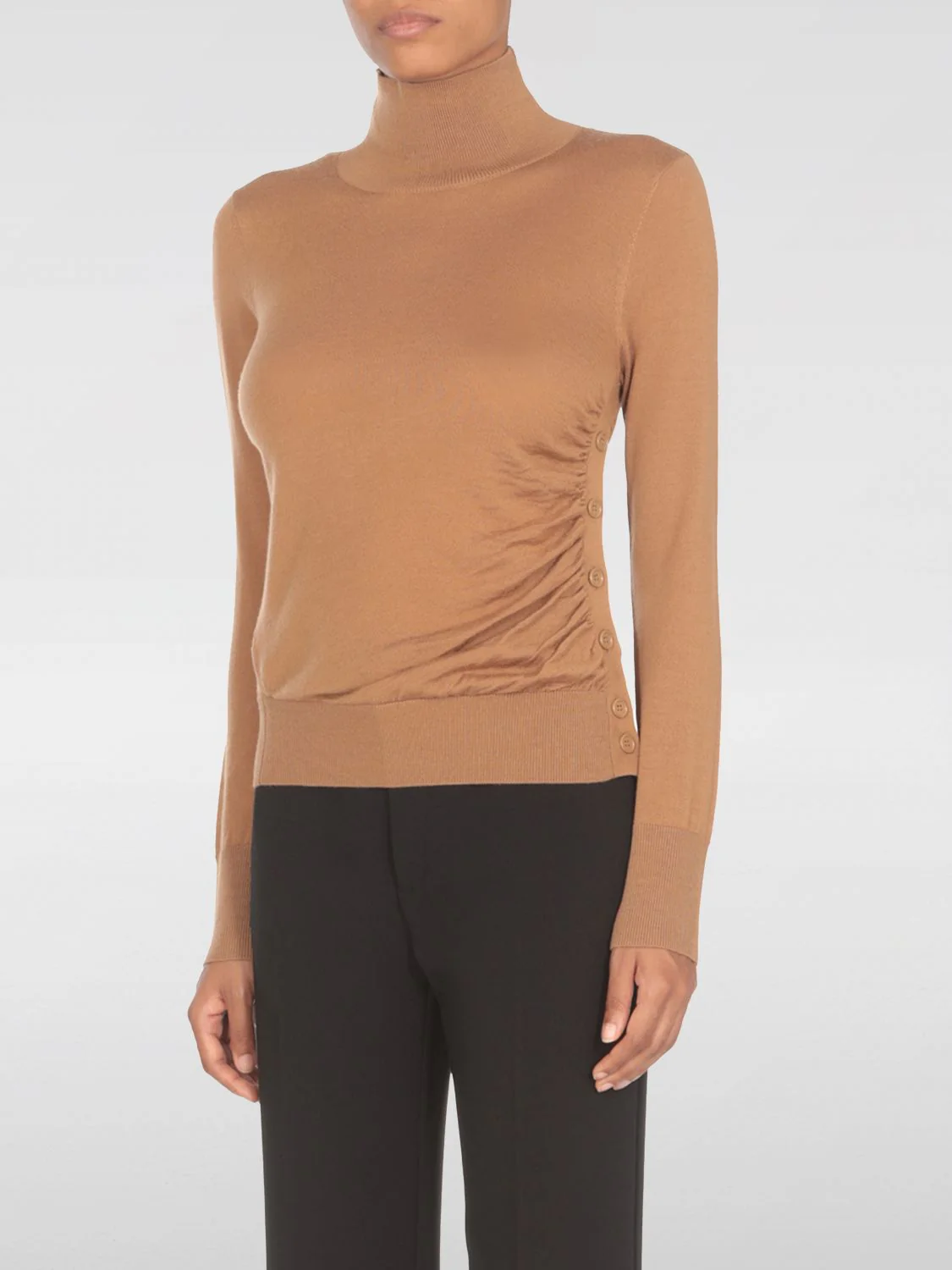 โข Fantasia: A tinta unitaโข Applicazioni: Con bottoniโข Materiale: In lanaโข Taglia e Vestibilitร : Slim fitโข Collo: Altoโข Spalle: Regolariโข Maniche: Lungheโข Chiusura: Con bottoni, Lateraleโข Fondo: Con bordi a costine, Con orlo dritto