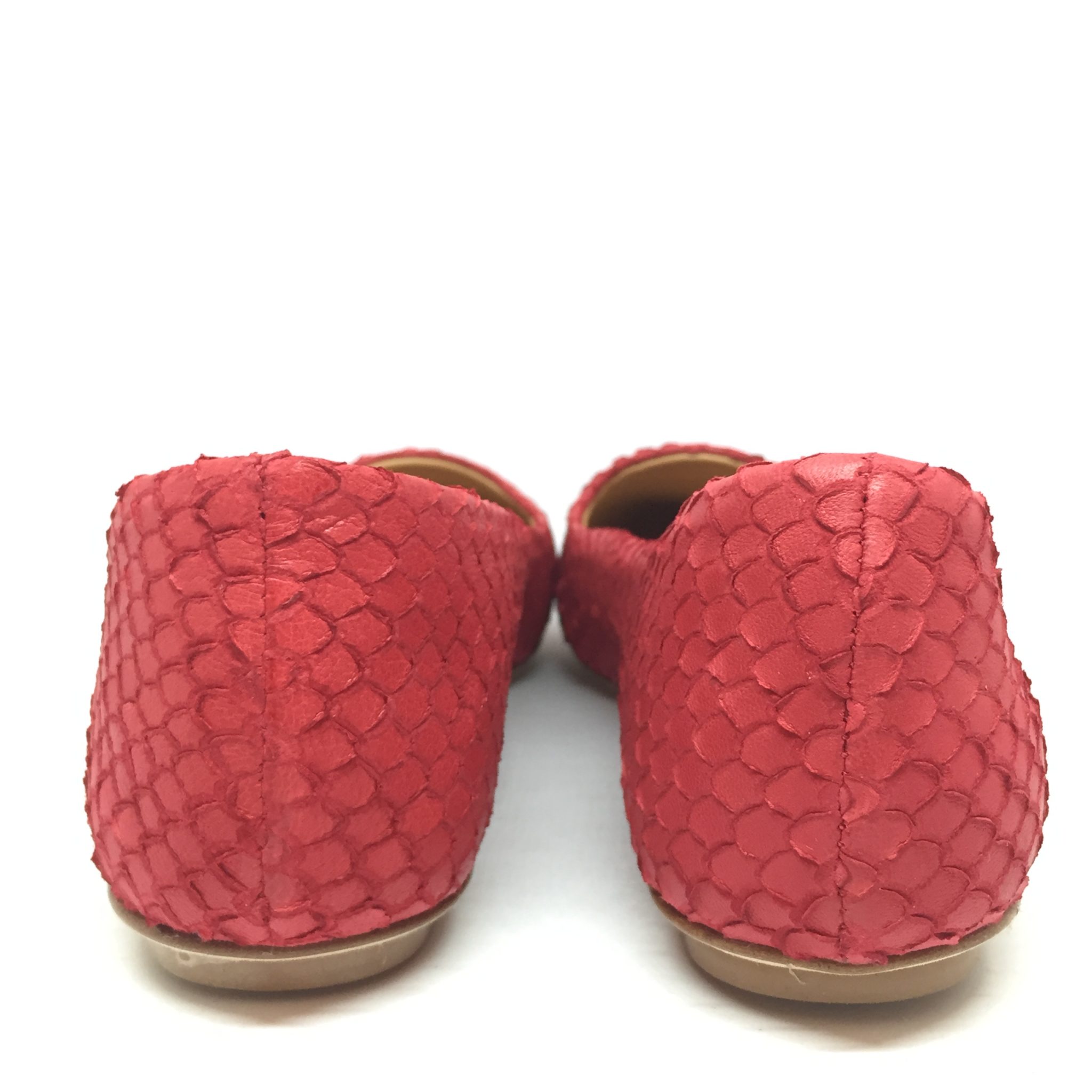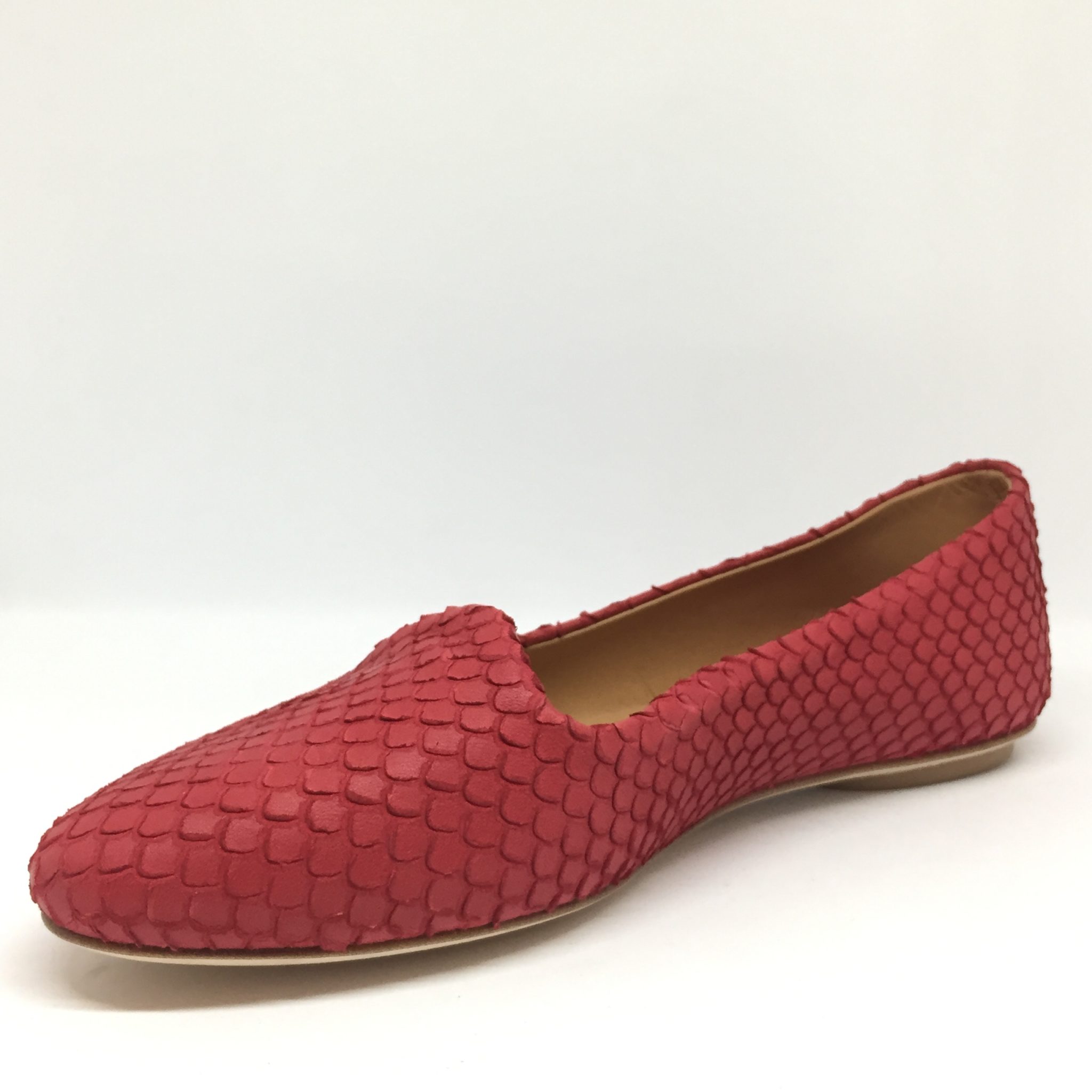 Anna F. Ballerina in pelle rossa laserata pitone, lavorazione a sacchetto, sottopiede imbottito , suola i cuoio 100% Made in Italy