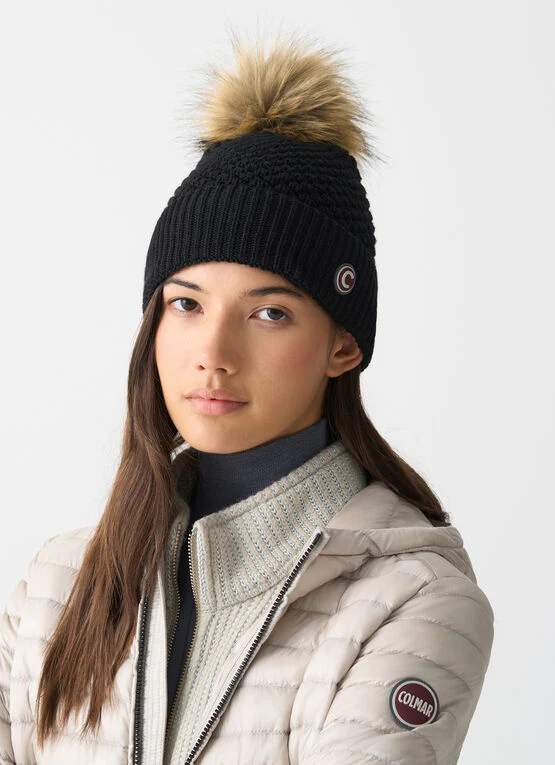 Accessorio ideale per l’inverno, il berretto con pompon in pelliccia dona un tocco di stile e calore nelle giornate fredde.