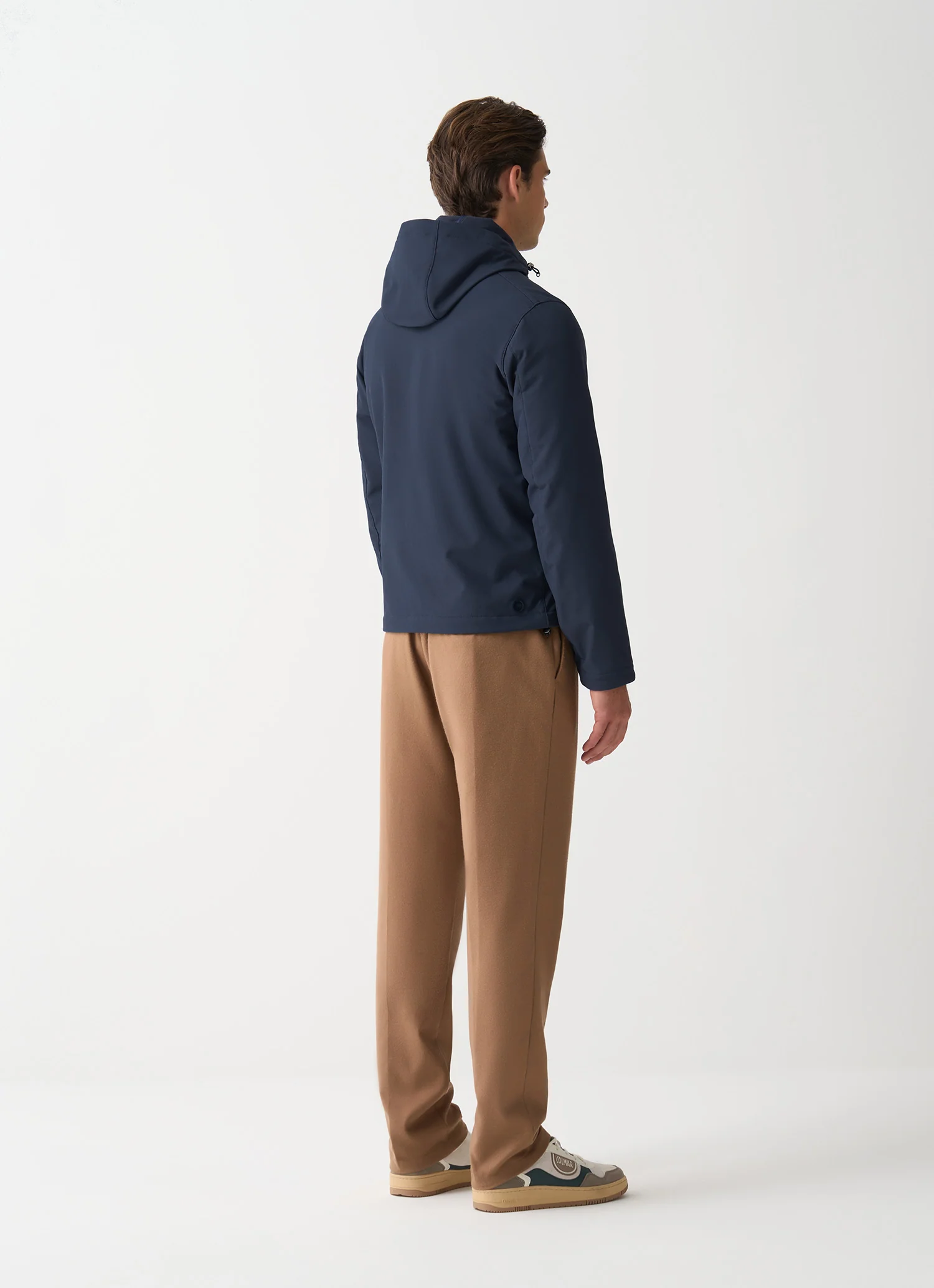 Realizzato in tessuto a tre strati impermeabile, questo capo unisce resistenza tecnica e calore grazie al soffice pile interno. Il cappuccio regolabile con coulisse offre una protezione aggiuntiva, mentre le tasche laterali completano la funzionalitร , conferendo al capo un look sportivo.