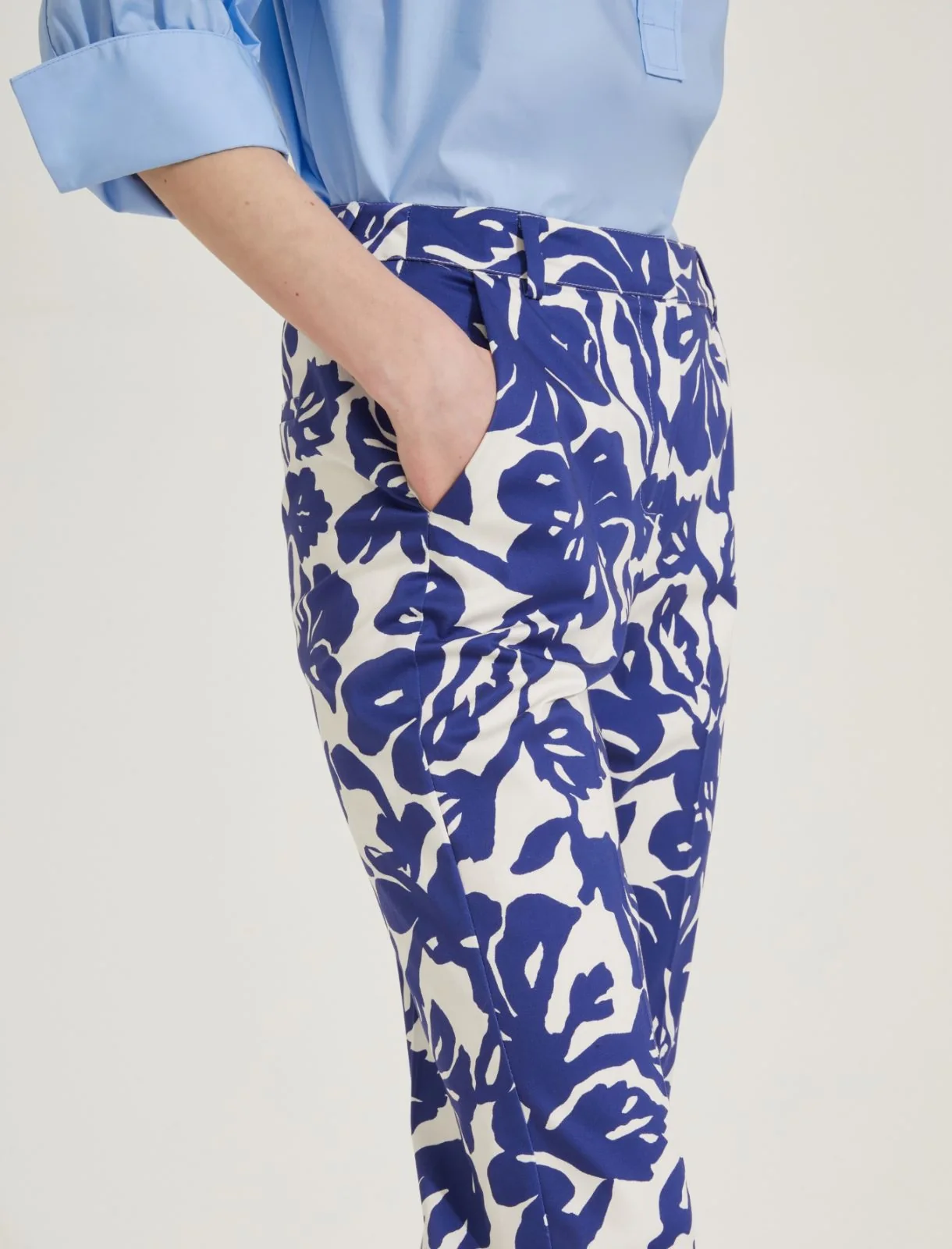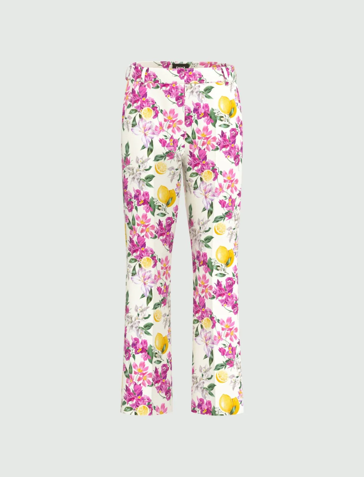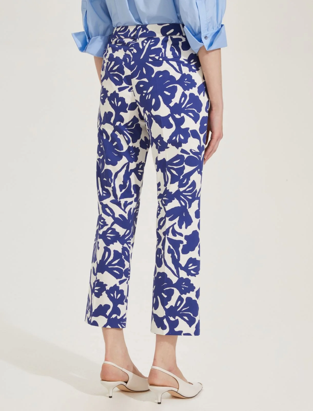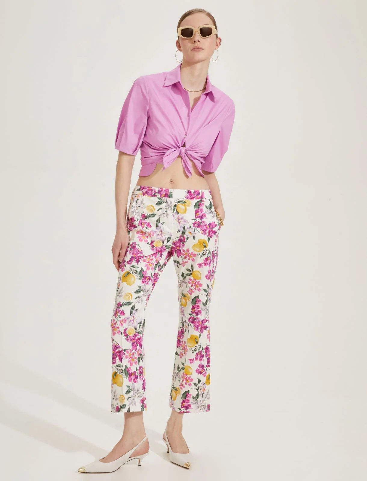 La macro stampa floreale regala un mood primaverile a questi pantaloni con linea flare. Versatili, si abbinano armoniosamente alla camicia in mussola o alle over shirt in popeline di collezione.