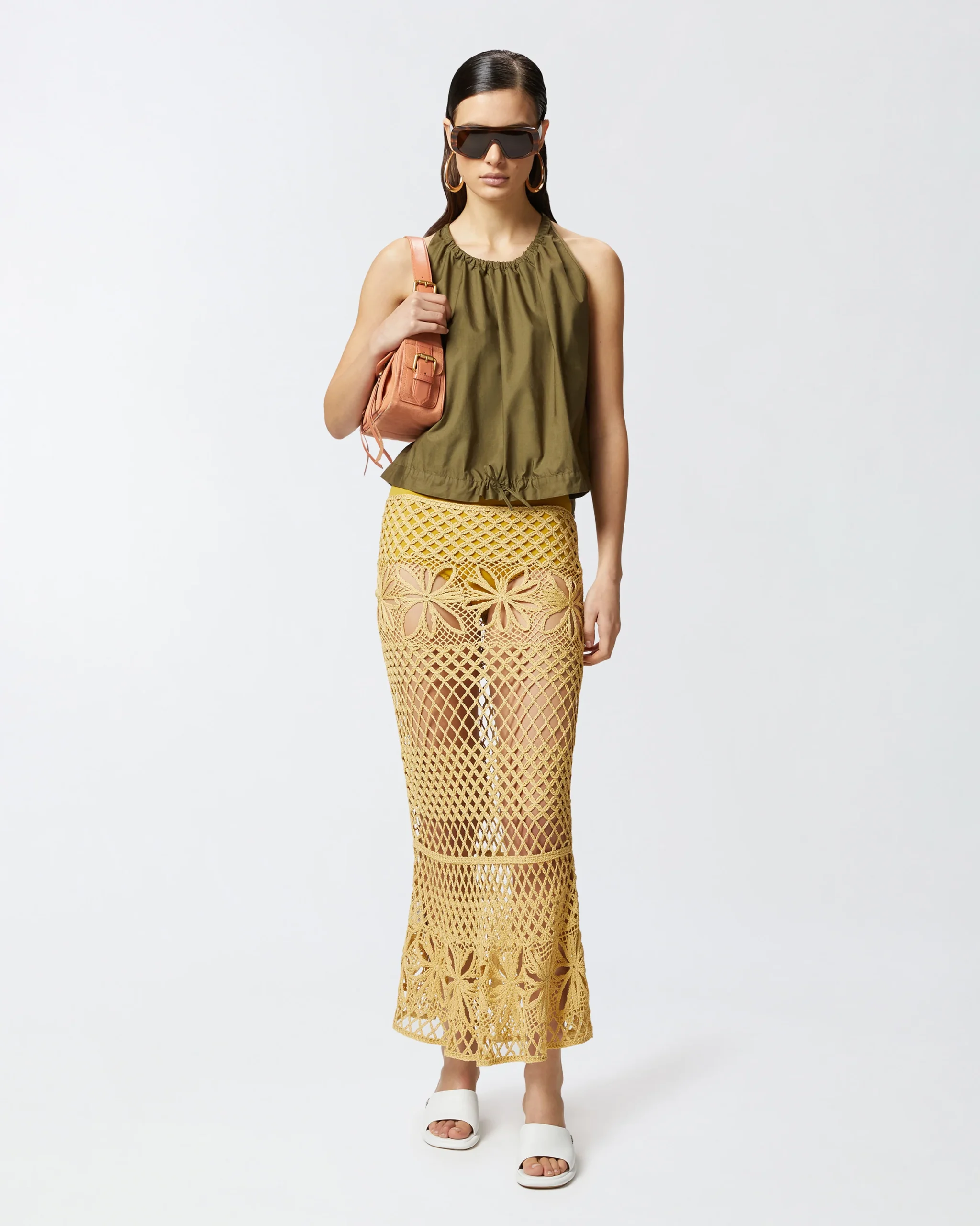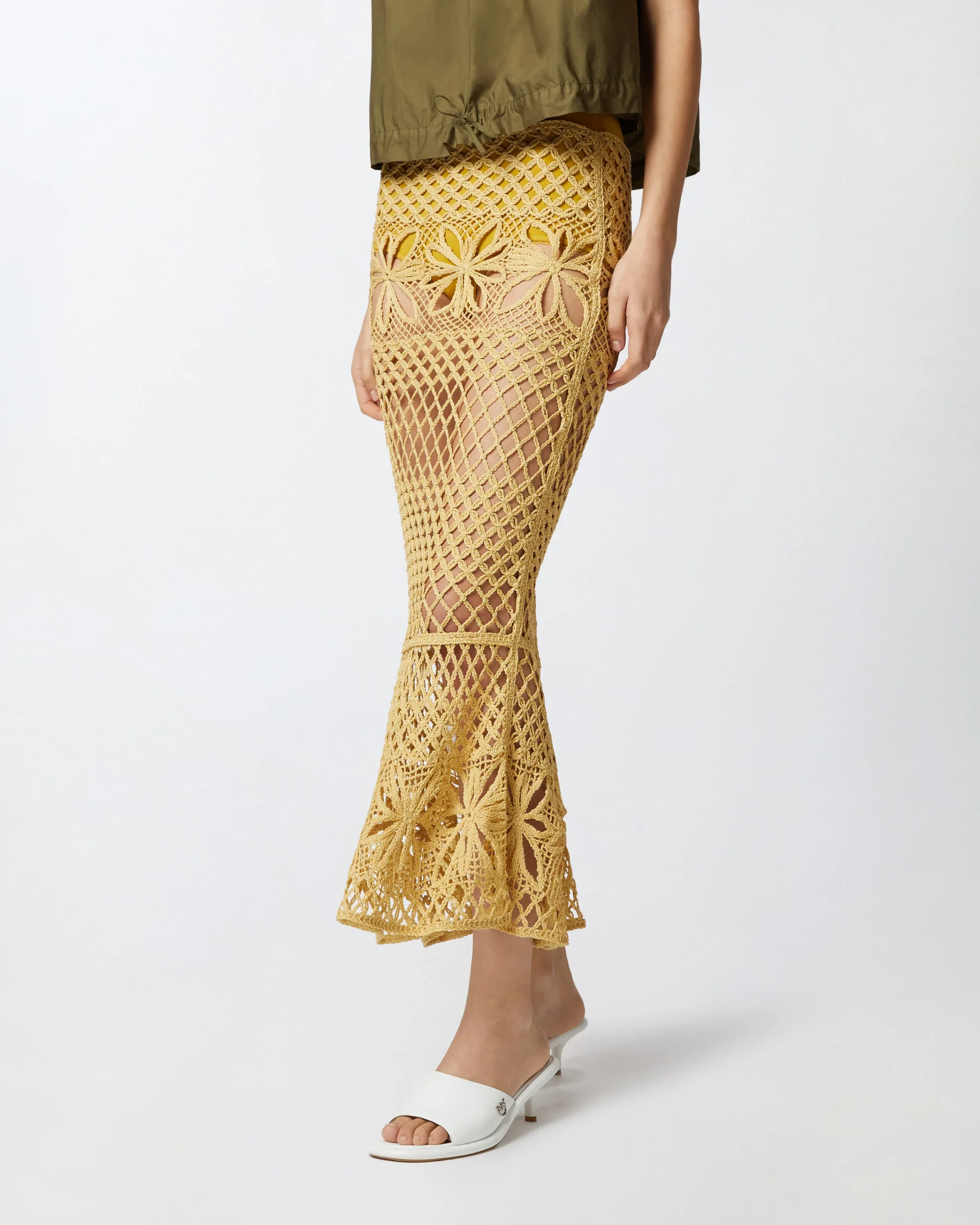 Gonna lunga effetto crochet fantasia Possibilitร  di abbinare sia coulotte che gonnellina.