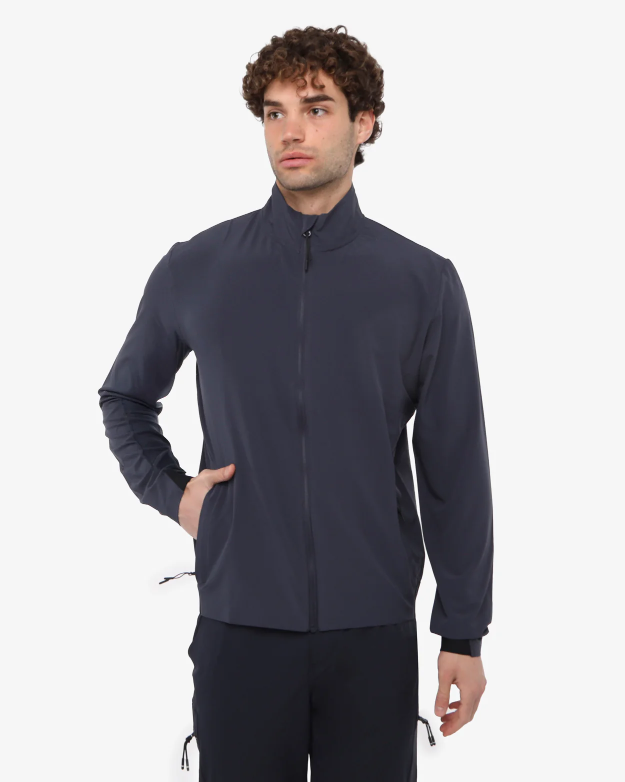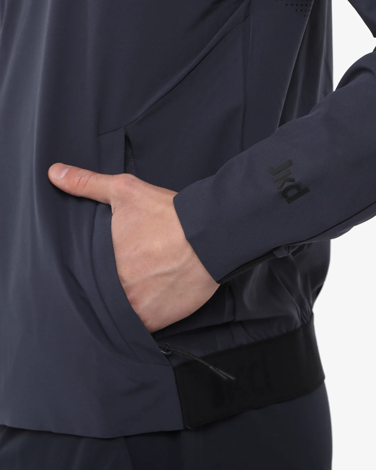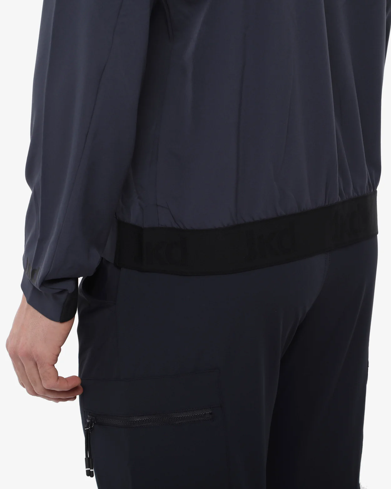 Giacca sfoderata realizzata in tessuto tecnico leggero, ripara dall’umidita’ ma lascia il corpo libero di muoversi. Le laserature suldietro permettono una ventilazione costante. tasche laterali ed inserti elasticizzati