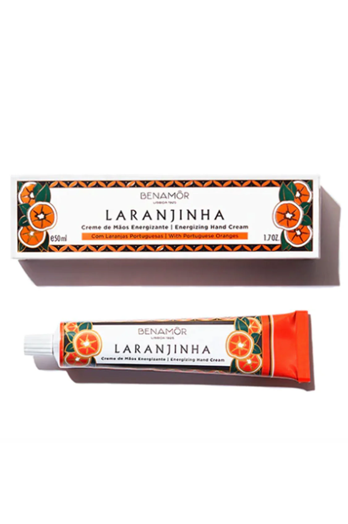 Questa crema mani รจ miscelata con arance portoghesi un ingrediente dalle proprietร energizzanti e un profumo tonificante che lascerร la tua pelle idratata e caldamente profumata, davvero succosa! la Crema si presenta in una confezione a tubo decorata con la sua scatola in tono nel formato da 50ml.