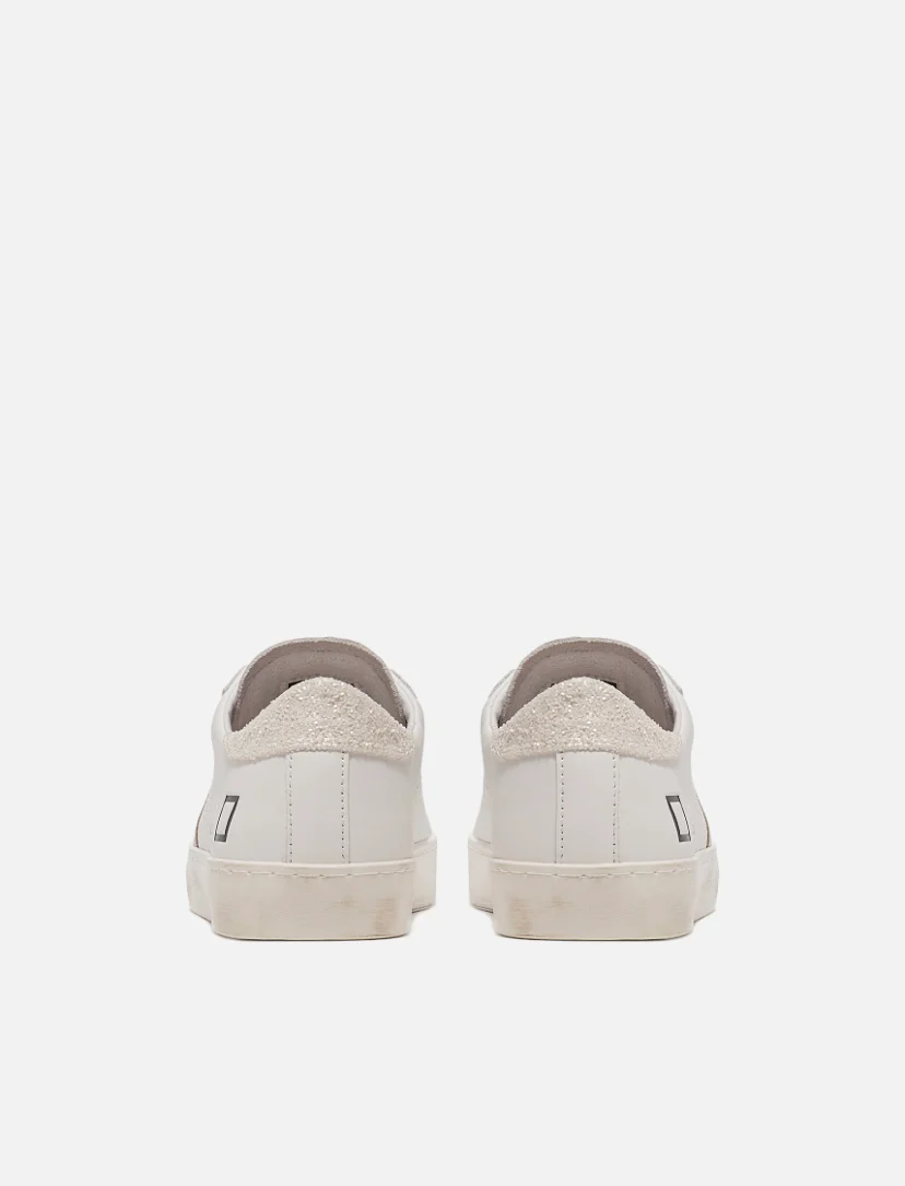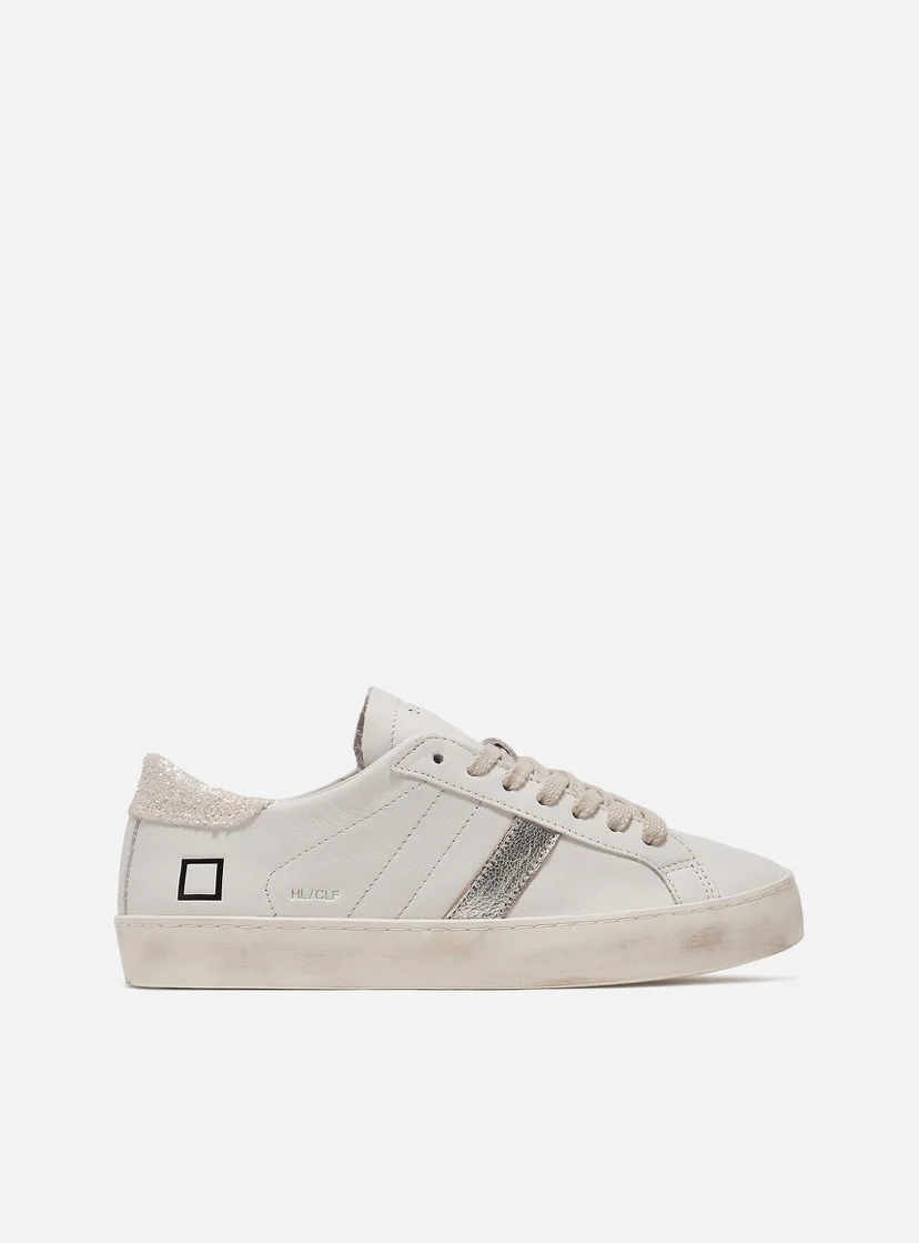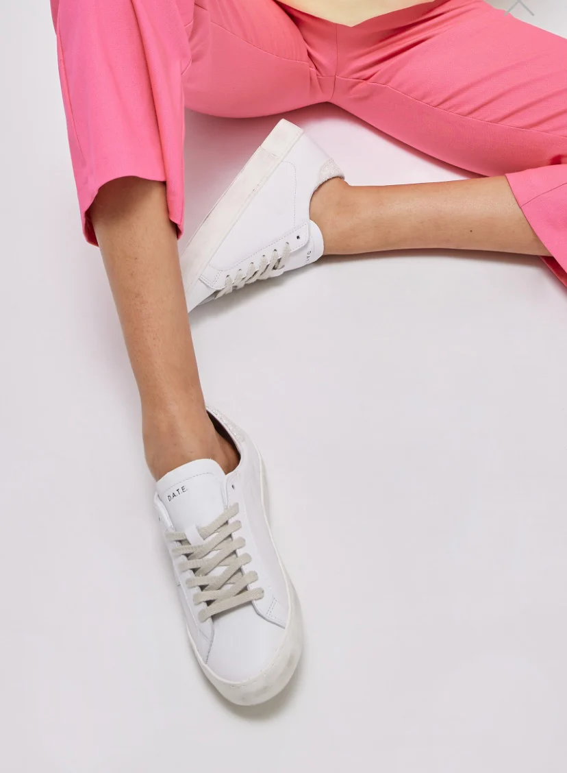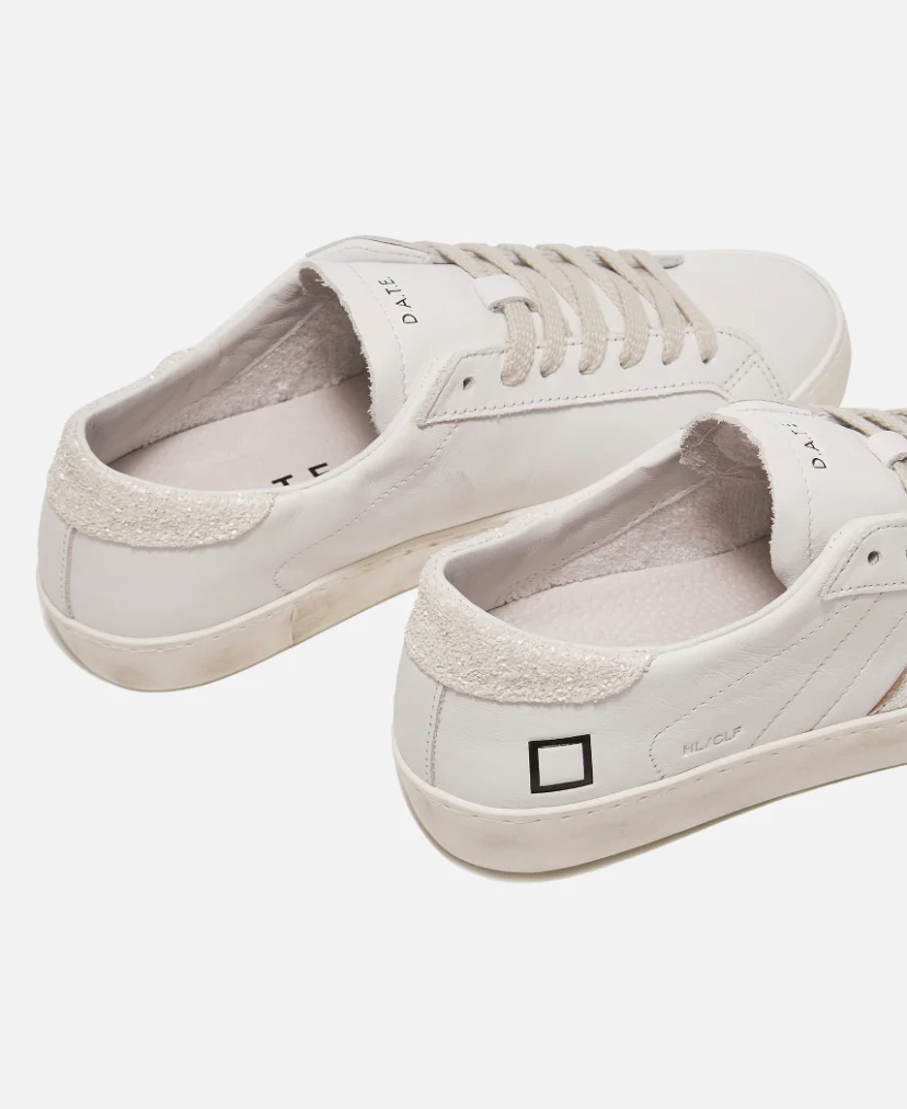La scritta D.A.T.E. รจ impressa sulla linguetta. I lacci sono in cotone e il codice e il logo quadrato sono impressi lateralmente. La banda laterale รจ in pelle laminata colore argento. Il talloncino posteriore รจ in glitter colore avorio. Fodera in pelle e spugna di cotone. La soletta interna รจ rialzata di 2.5 cm per […]