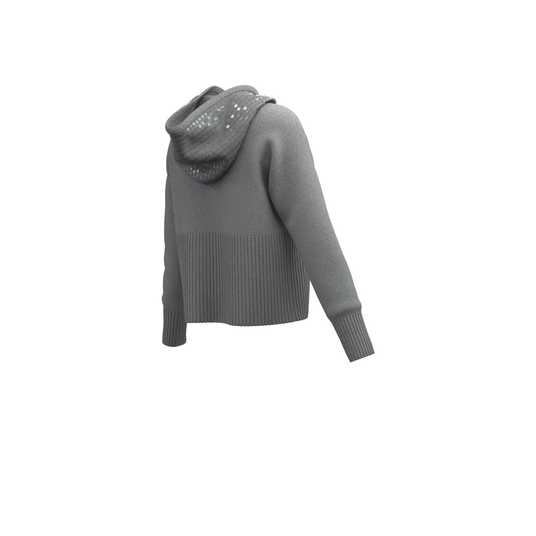 Entra nella comfort zone: la maglia con cappuccio fonde suggestioni sportswear e glam, grazie al tocco di paillettes a illuminare il viso. Con jeans o pantaloni en pendant, sarร il caposaldo dei look cozy chic.