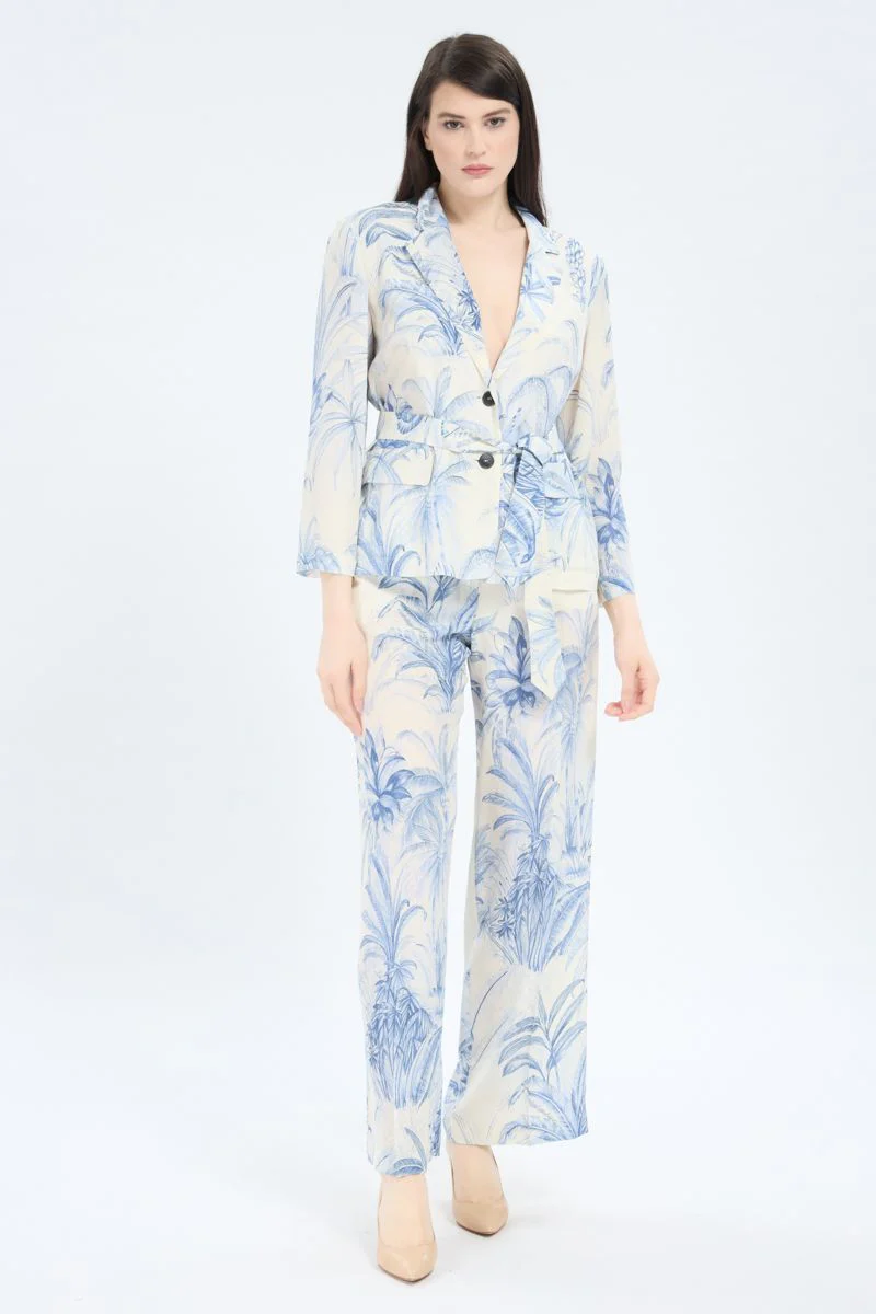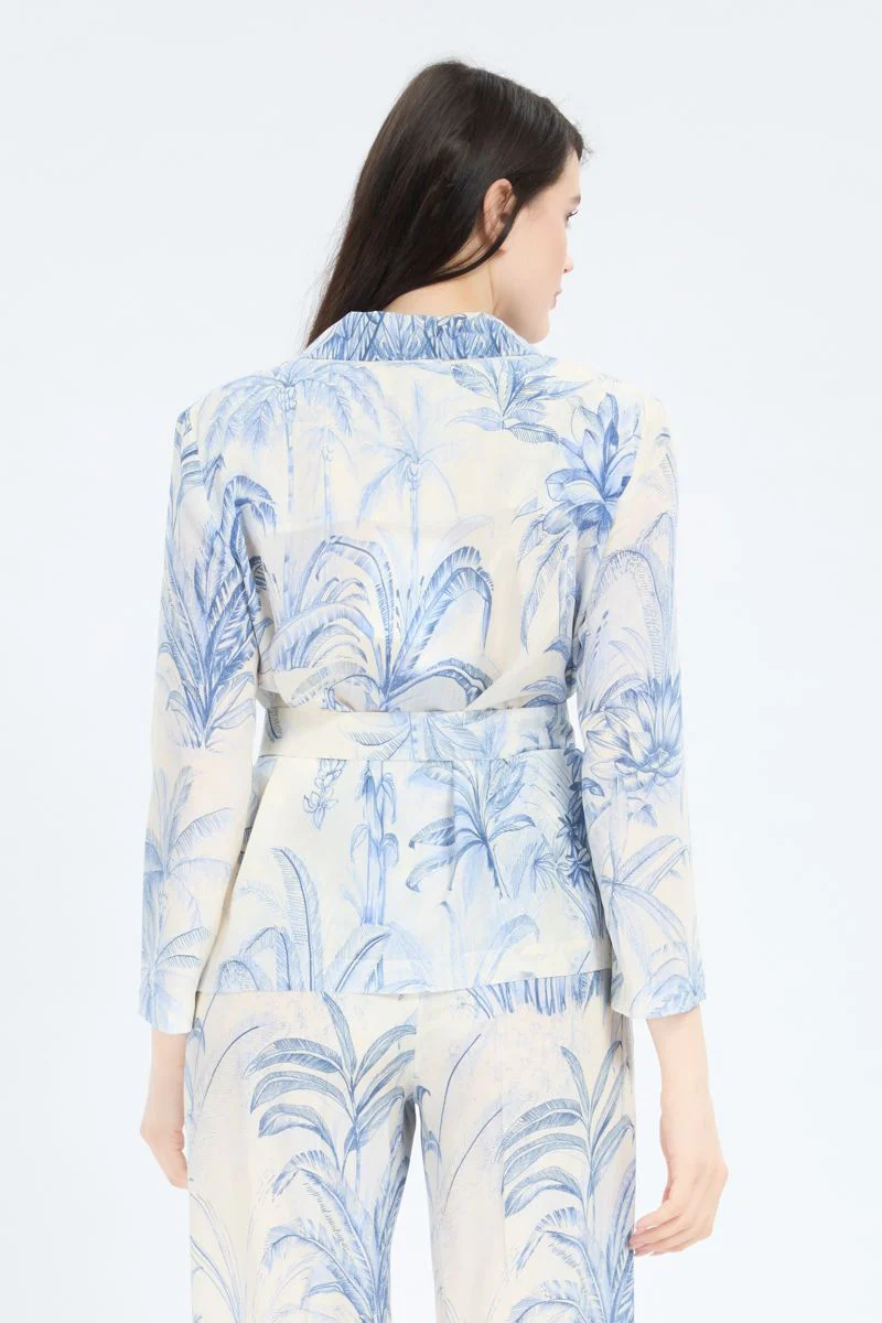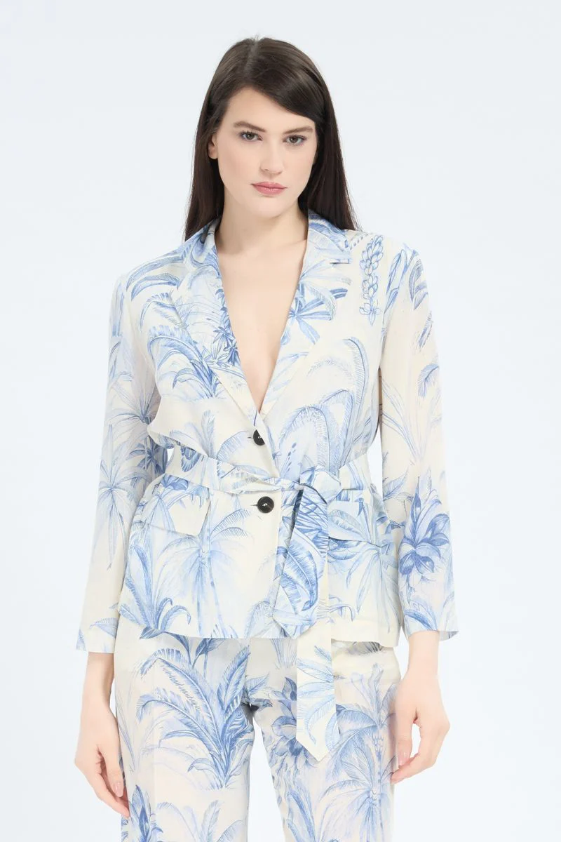 Prezioso nei materiali e decorato da una stampa ricercata, questo blazer e’ un pezzo chiave per look che non passano inosservati. Blazer in crรชpe de Chine di pura seta. Fit morbido. Scollo con rever. Chiusura monopetto con bottoni e cintura. Maniche ampie, tasche con patta. Capo sfoderato.