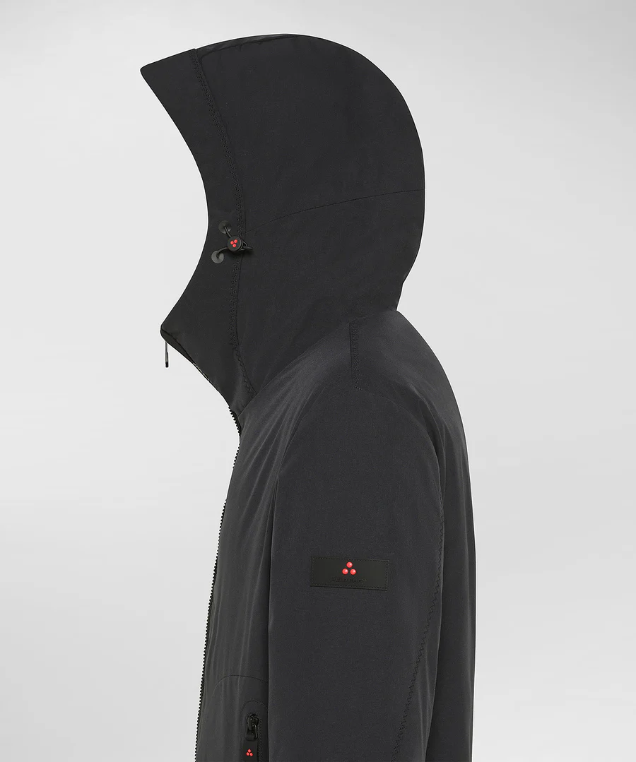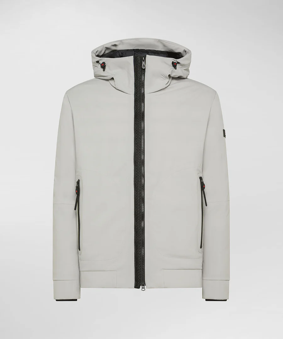 Giacca corta realizzata in tela di poliestere stretch accoppiata con un jersey di poliestere soffice e caldo, grazie alla finezza dei filati utilizzati. Lโimbottitura in Thermoplume, valida alternativa sintetica alla piuma dโoca, assicura calore, morbidezza e leggerezza, oltre a una naturale resistenza allโacqua. Parte della linea Color in cui i disegni geometrici prendono vita ed esaltano i piumini della sezione, un concept giocoso e ironico che reinterpreta il capospalla in modo creativo ed easy. Il design essenziale e curato include doppia zip centrale pensata per regolare il capo e aggiungere praticitร , tasche laterali a filetto, polsini antivento in maglina nera e cappuccio con tiranti regolabili, per una protezione ottimale. Il trattamento idrorepellente PFC Free Free โ privo di sostanze chimiche dannose per lโambiente – rende il capo ideale per affrontare ogni situazione quotidiana, dal tempo libero agli spostamenti urbani, con stile e funzionalitร .