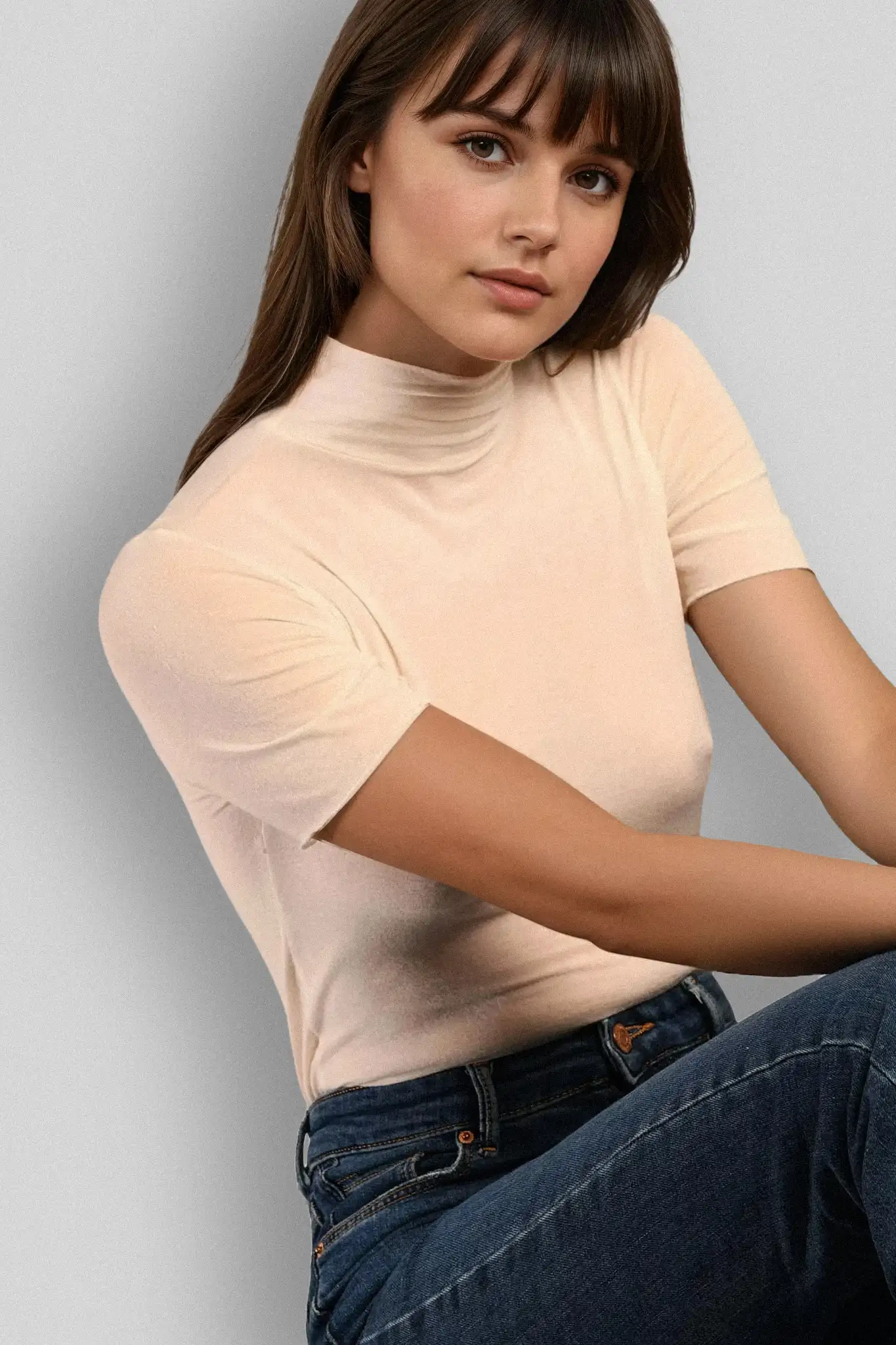 Lupetto a Manica Corta in Modal Ultralight con Cashmere