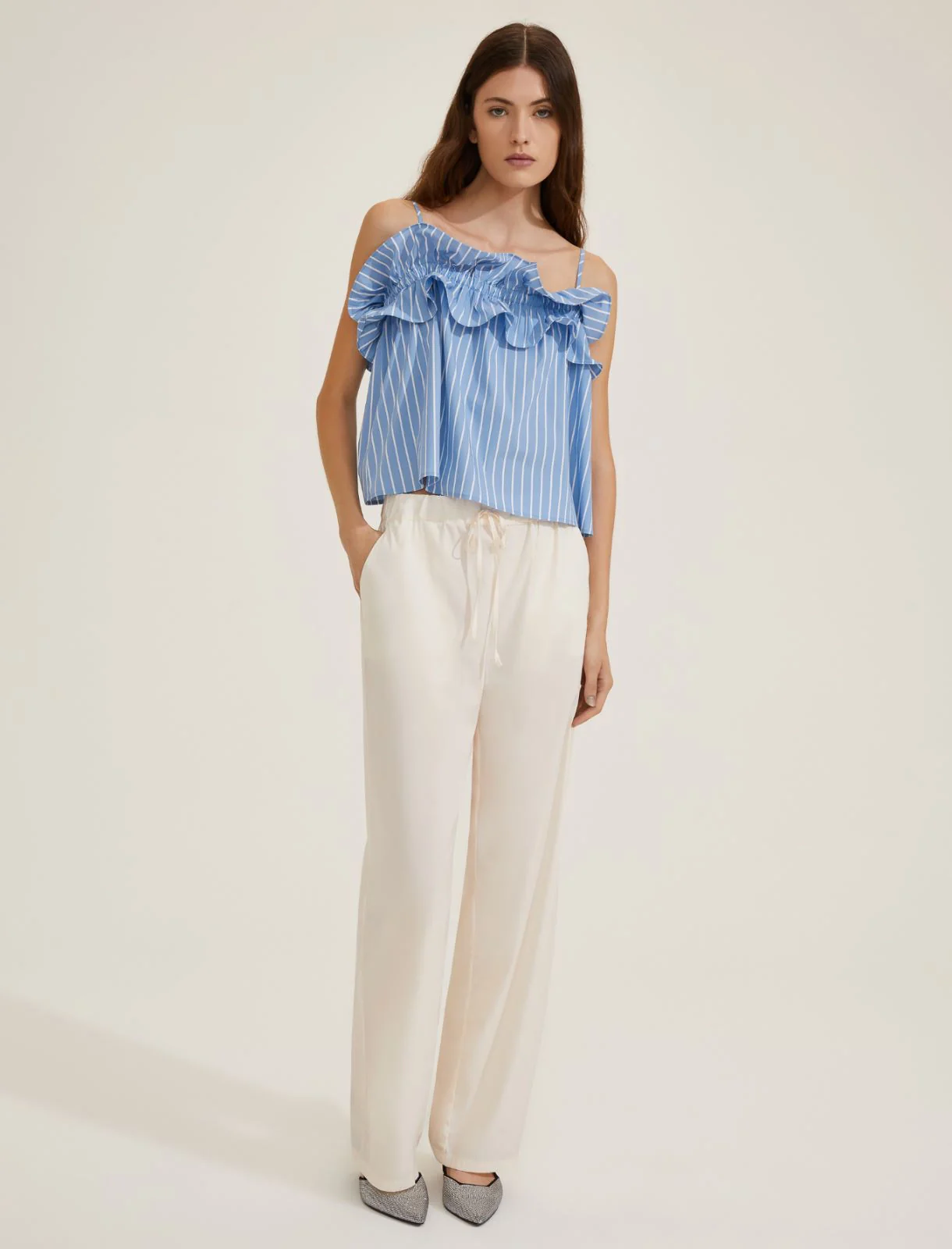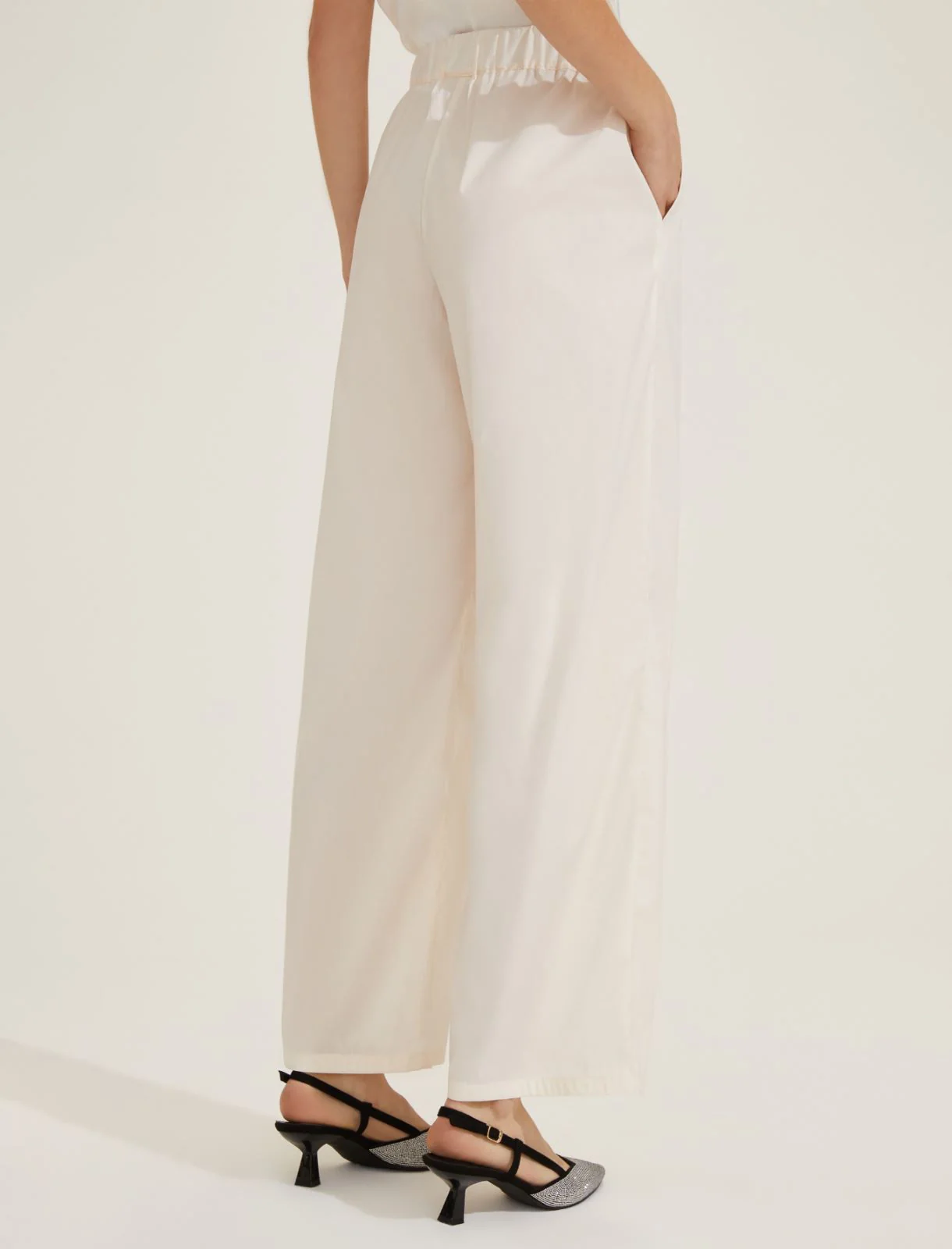 pantaloni dall’estremo confort con coulisse in vita realizzati in lino e viscosa.