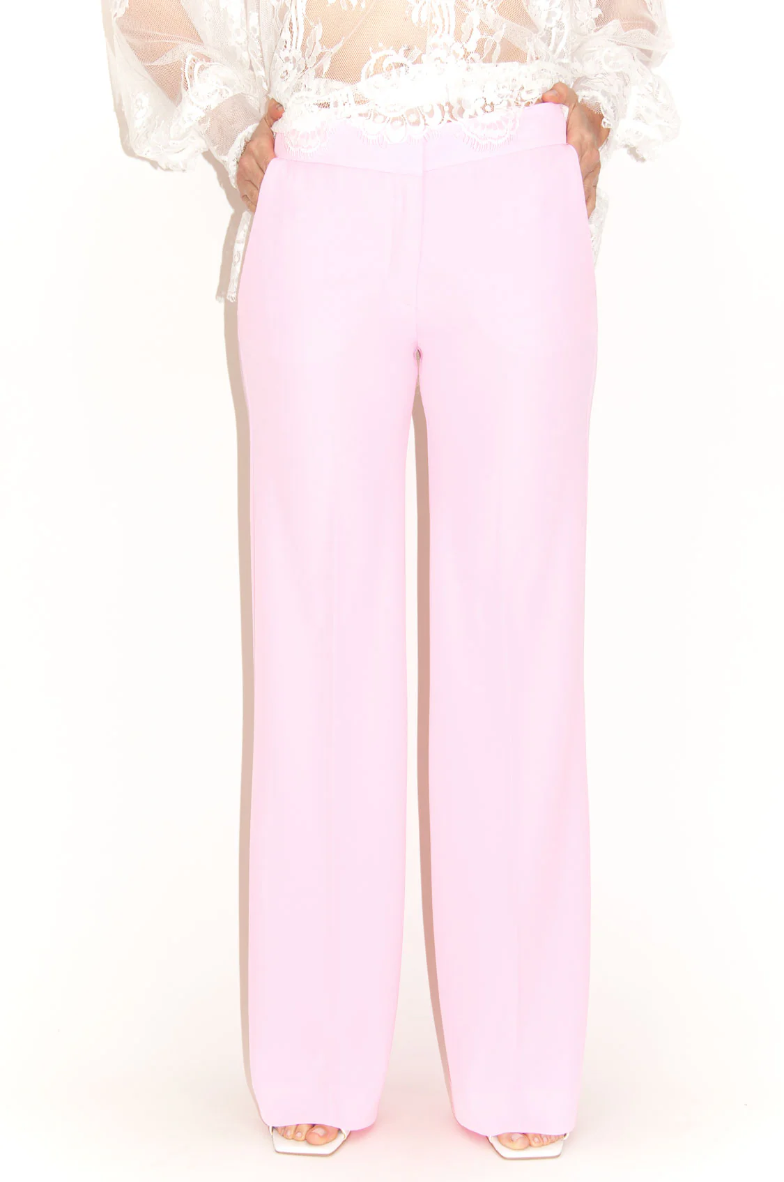 Pantalone palazzo in tessuto fluido a vita bassa la modella indossa la taglia 42IT il colore puรฒ variare dalla foto