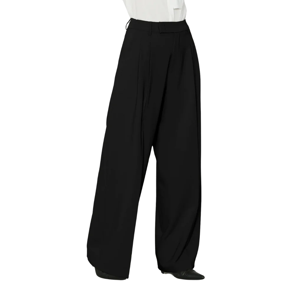Panta Arabia vita alta palazzo con pieghe piรน tasche francesi. Vestibilitร morbida e linea dritta per i panta palazzo ARABIA. 88% poliestere 12% elastane