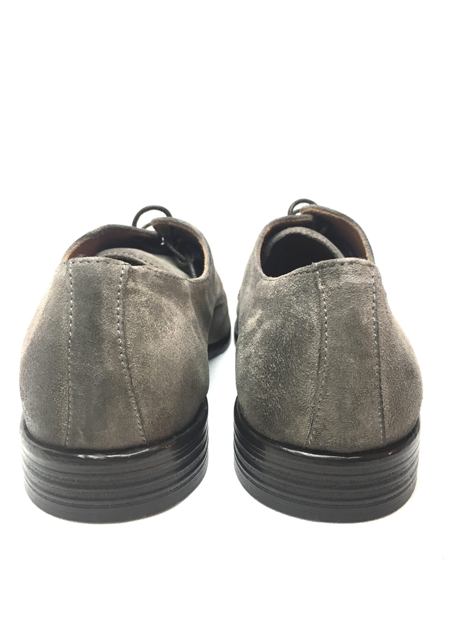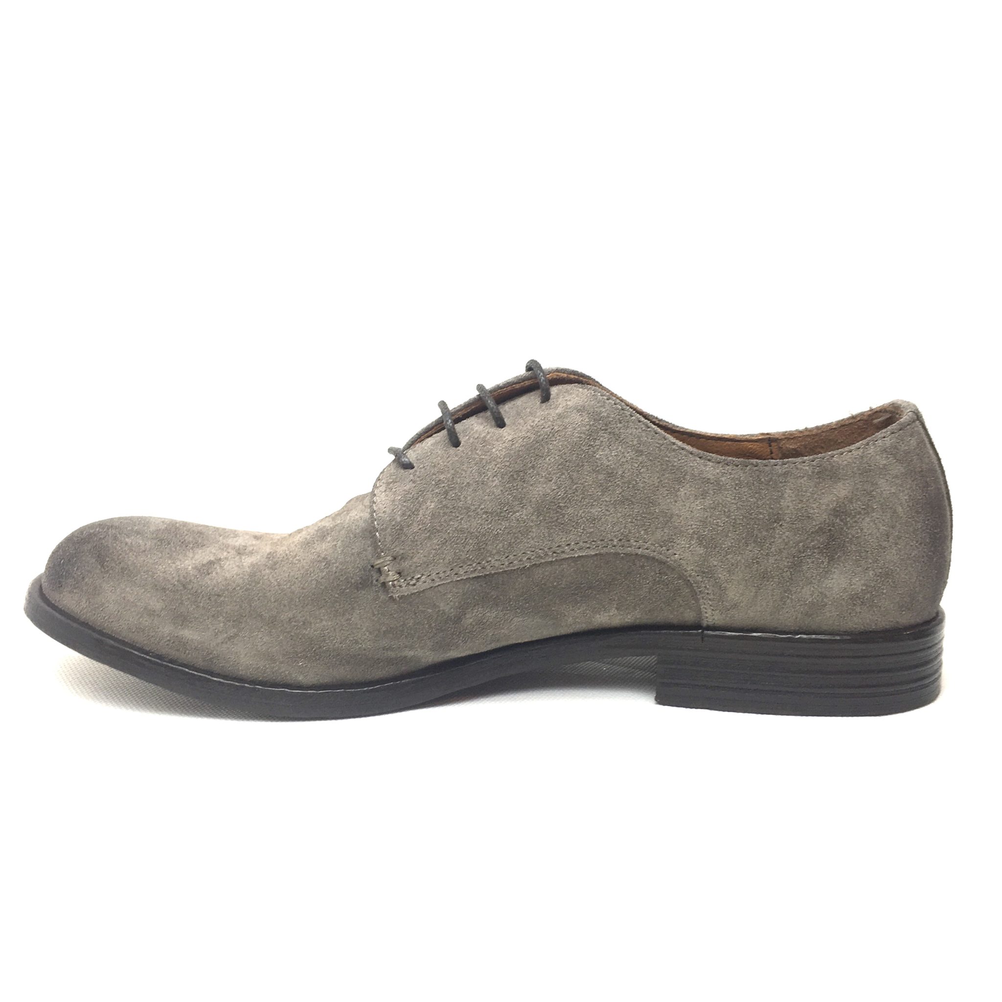 Pawelk’s 19016. Scarpa uomo allacciata 4 fori in vera pelle scamosciata. Colorazione:taupe. Fondo cuoio. Made in Italy
