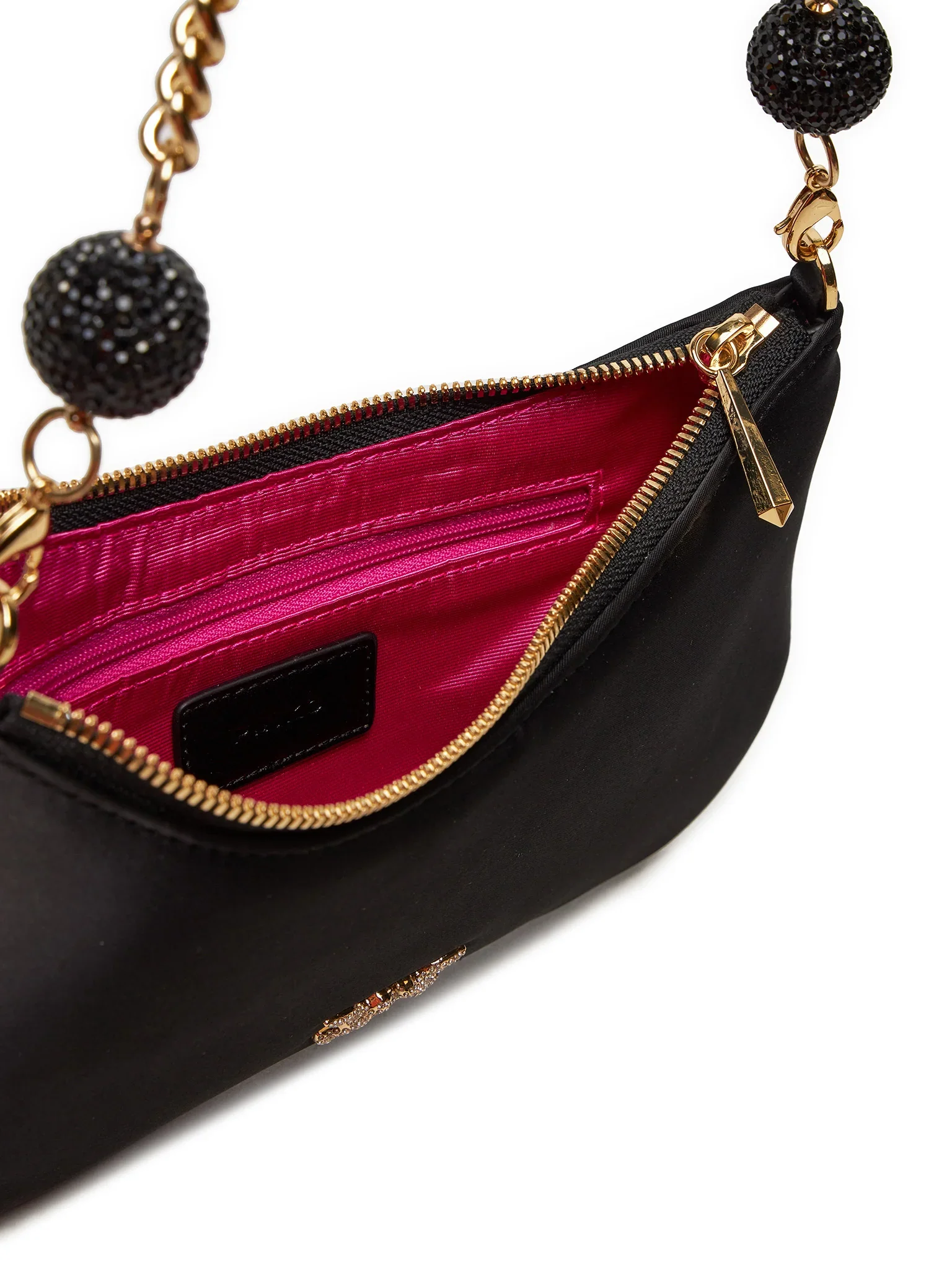 Product Features Chain strap Dimensions: 10.23″W x 5.90″H Zippered closure Interior card slot 100% polyester satin; lining: 50% polyamide/50% polyurethane Imported Shipping & Returns California and Minnesota customers call 1-800-777-0000 for Free Shipping information.
