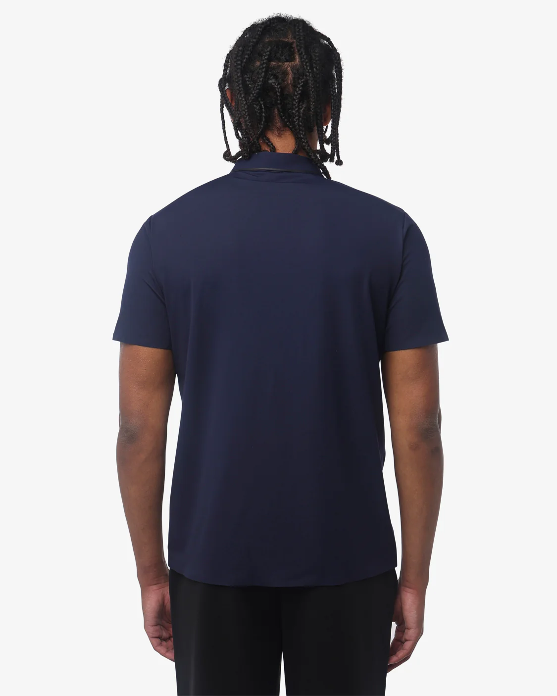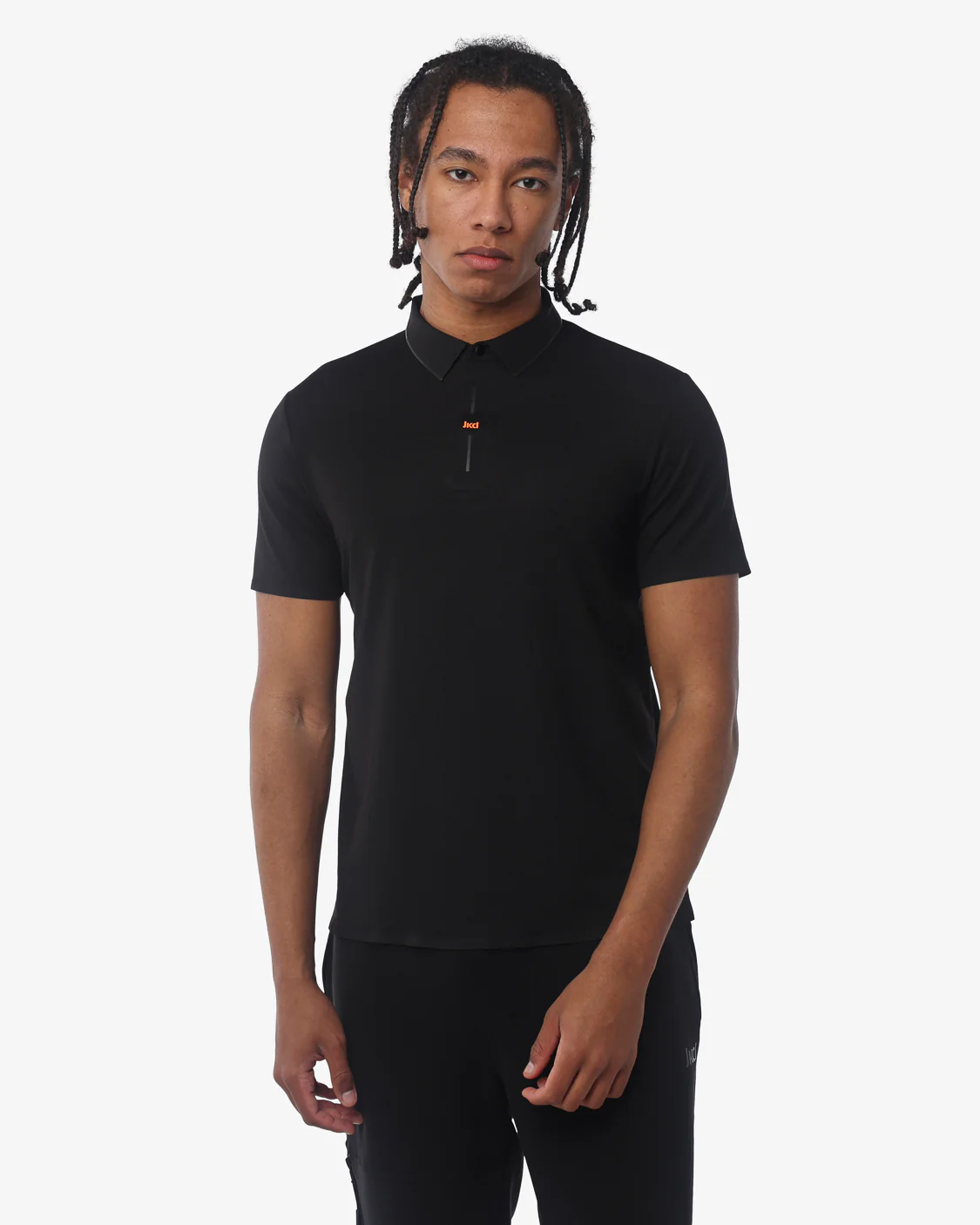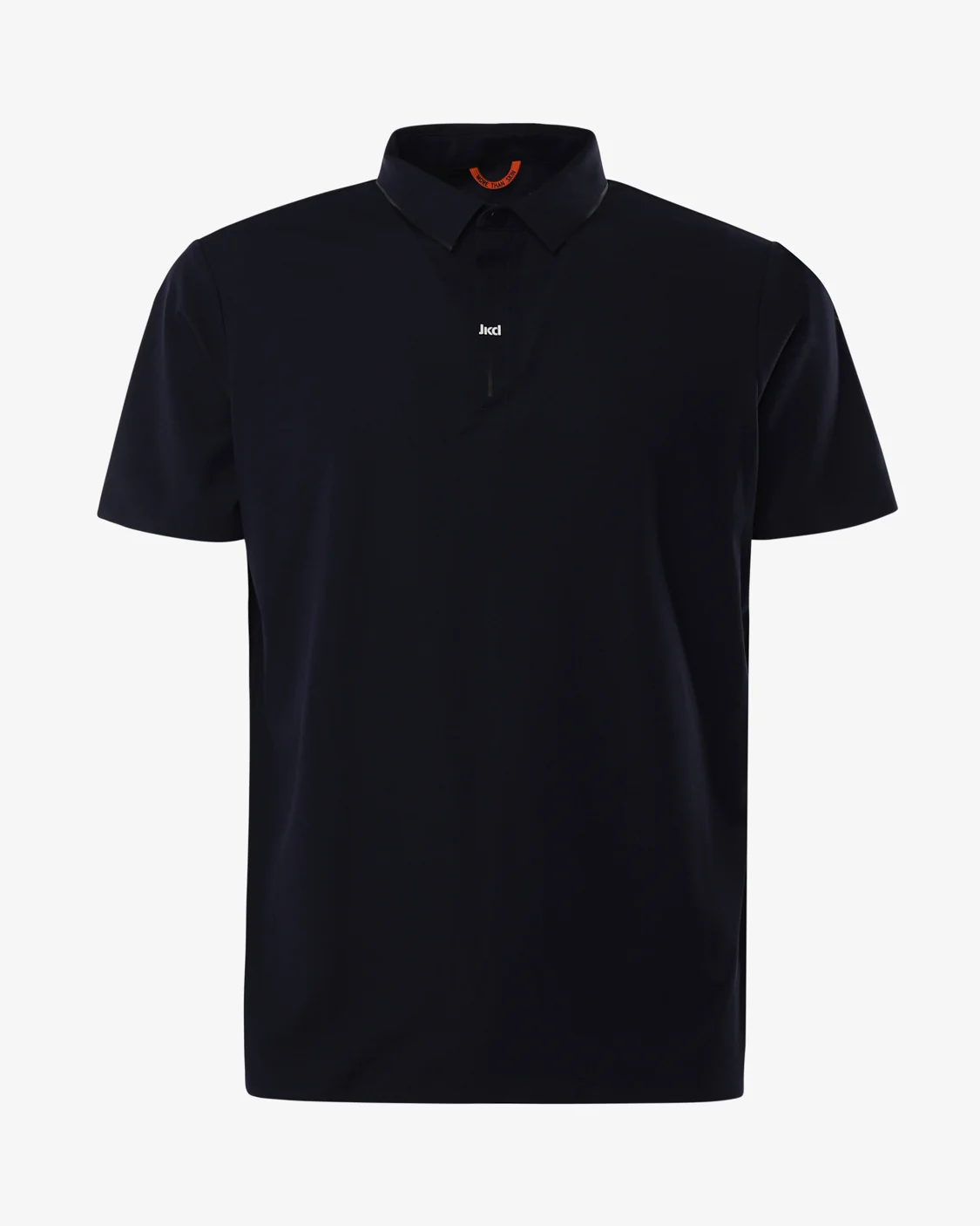 Polo mezza manica in tessuto leggero dallo style minimal con stampa in contrasto effetto gommato sullo scollo davanti. Ideale come capo sportwear multifunzionale.