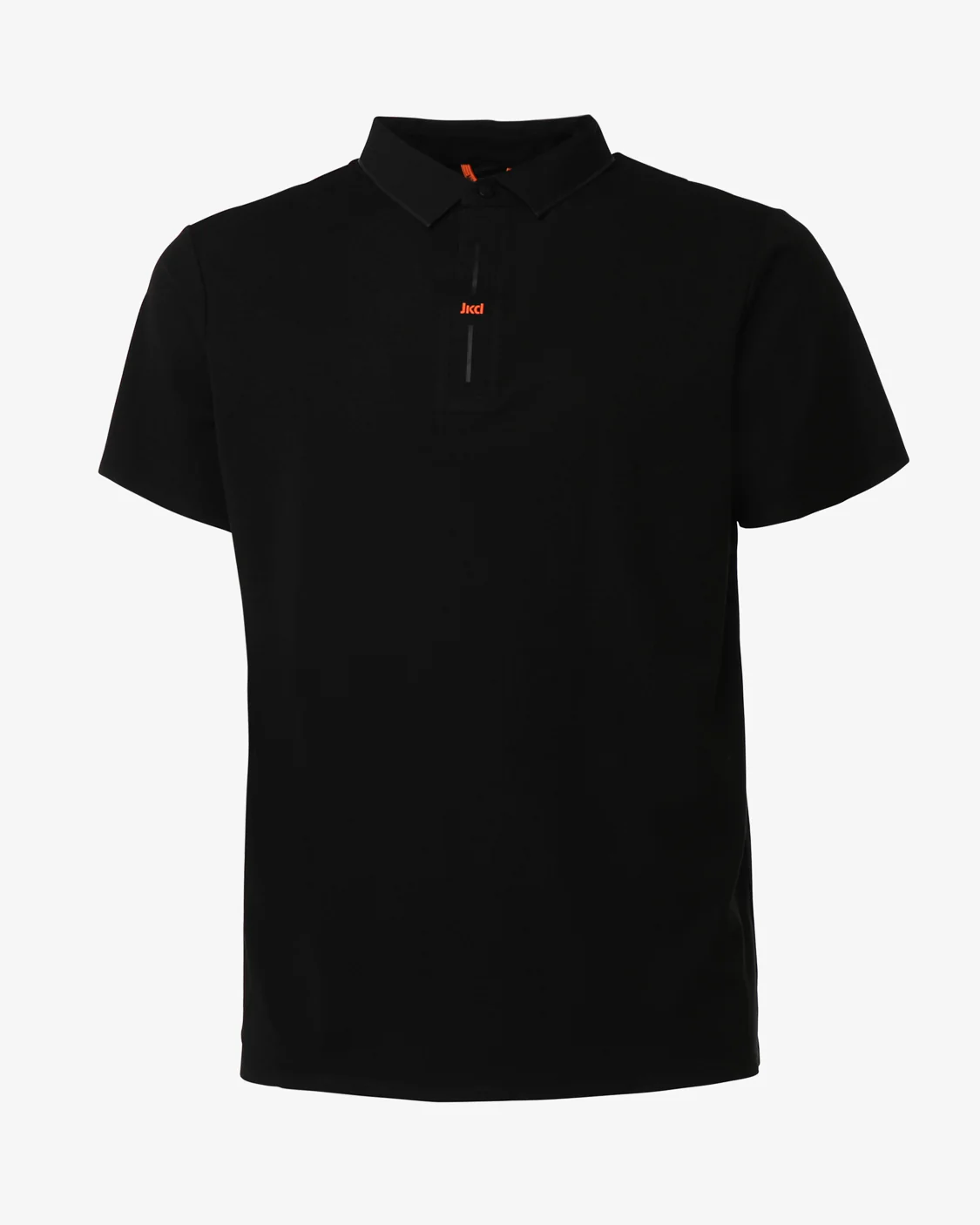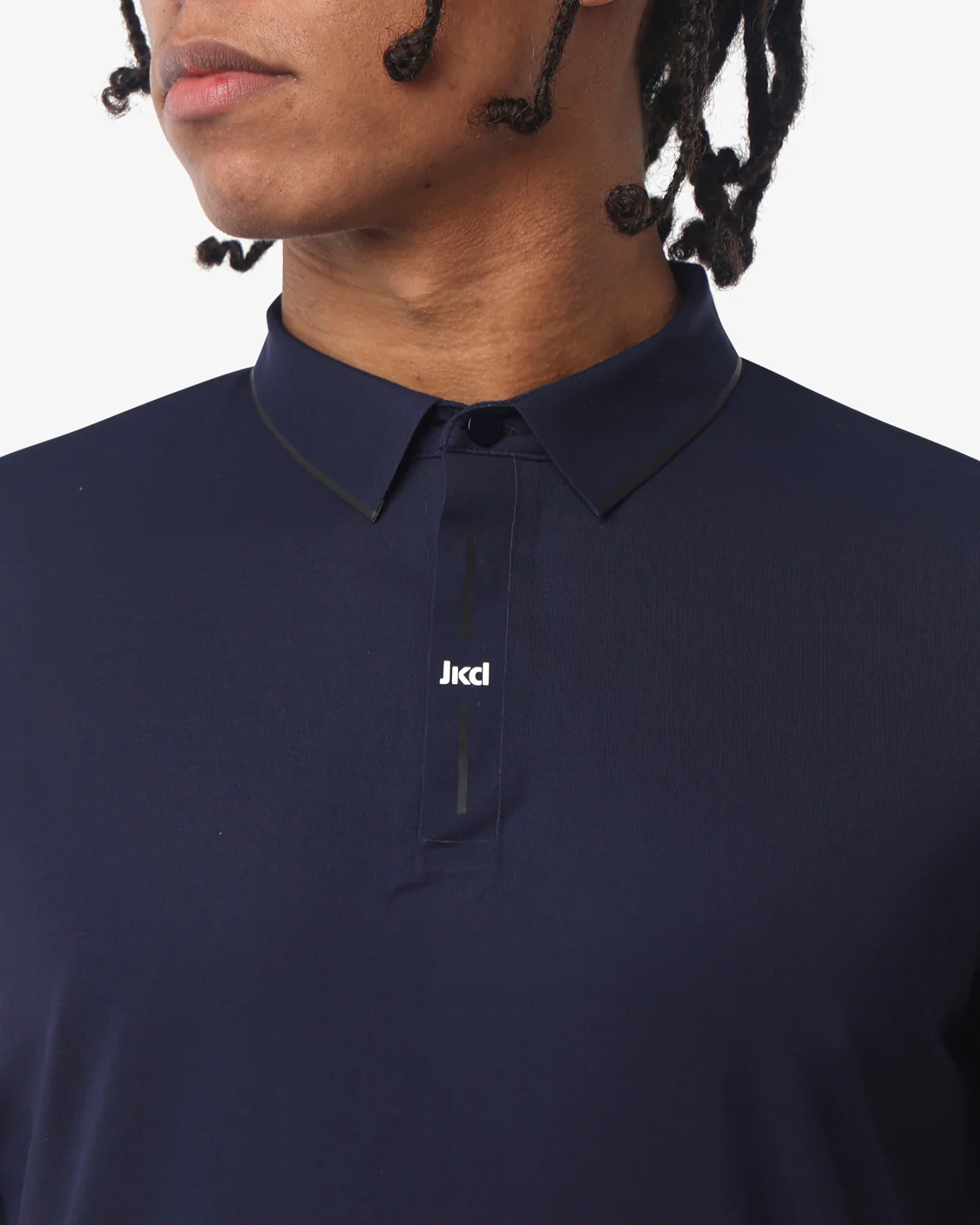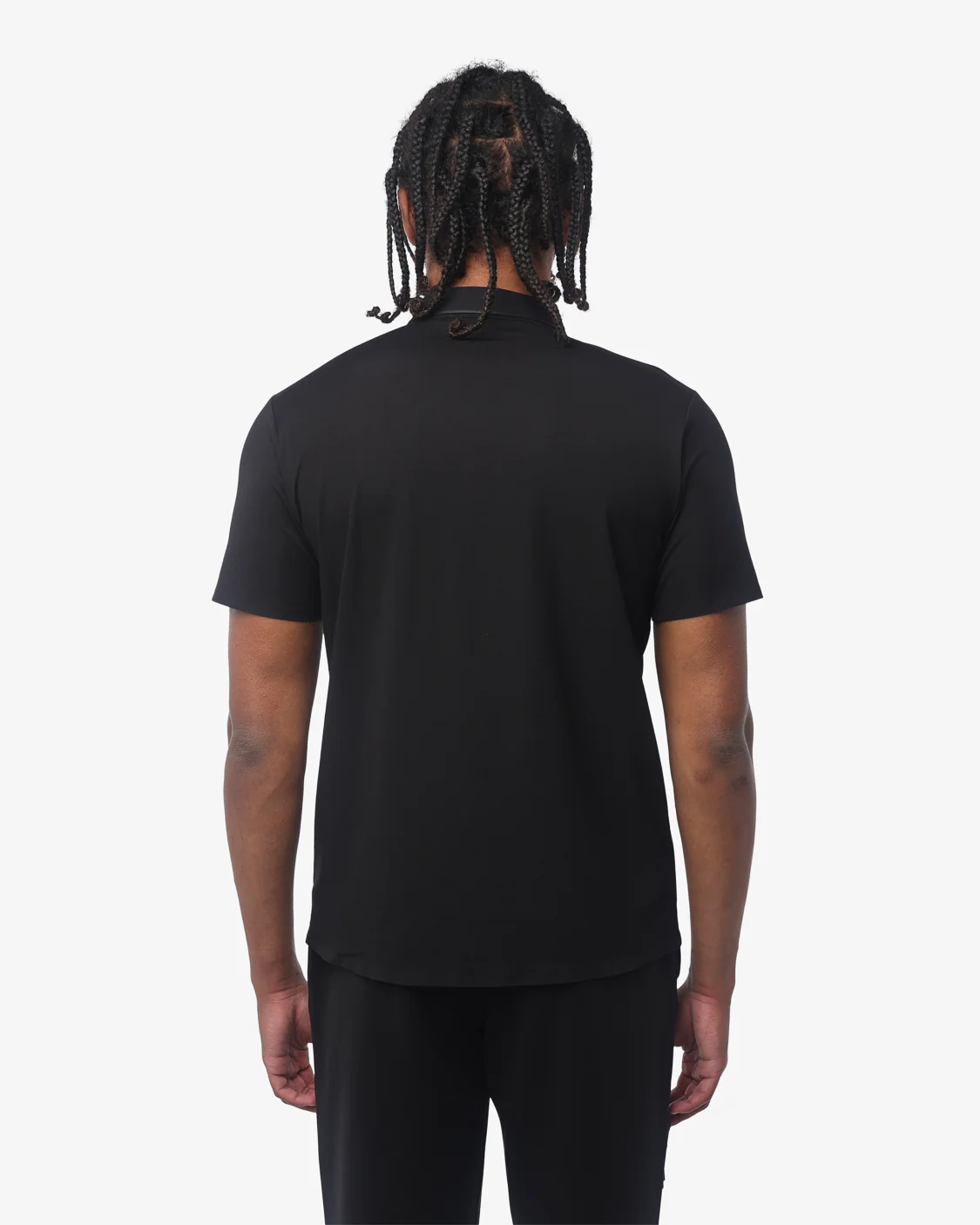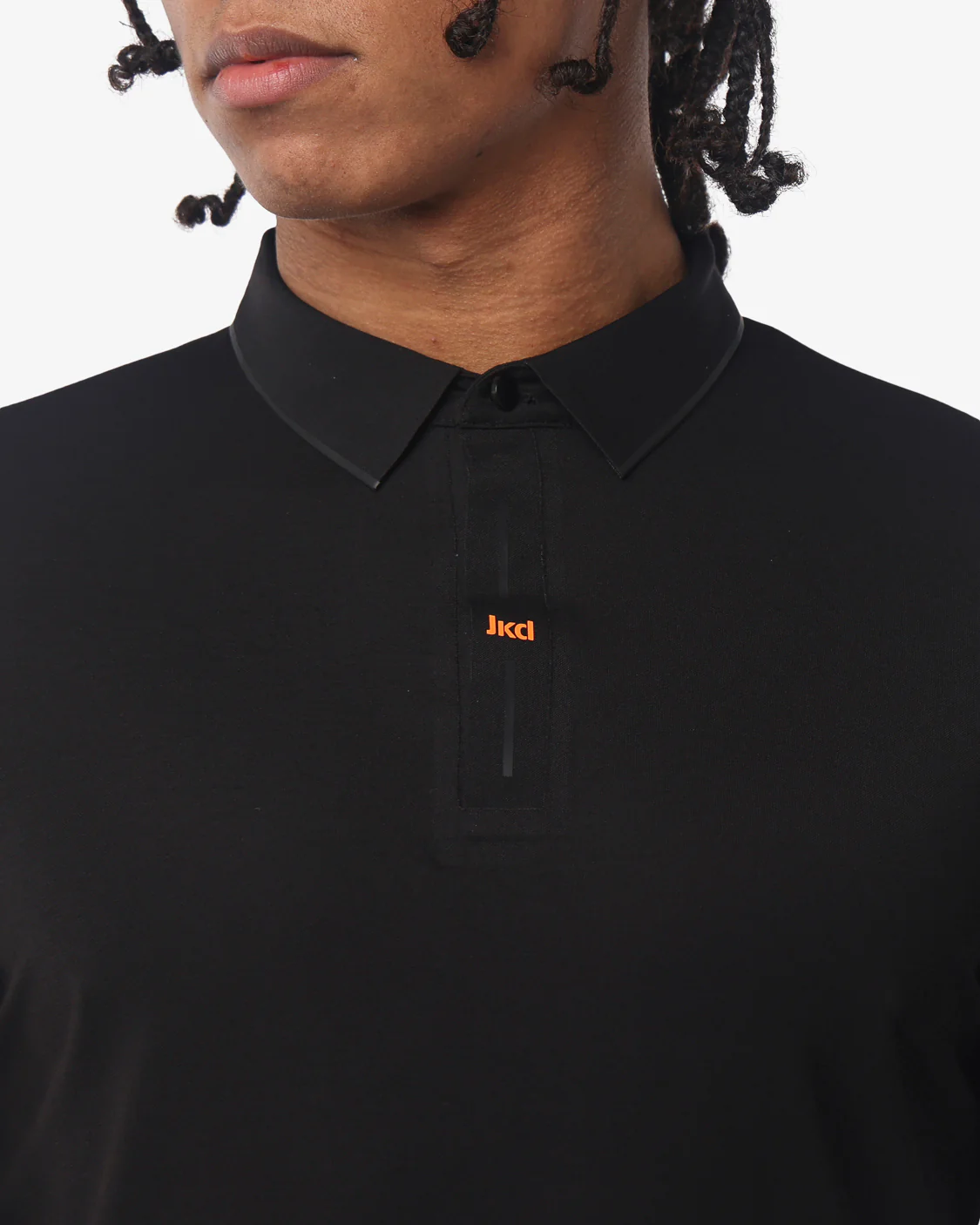 Polo mezza manica in tessuto leggero dallo style minimal con stampa in contrasto effetto gommato sullo scollo davanti. Ideale come capo sportwear multifunzionale.