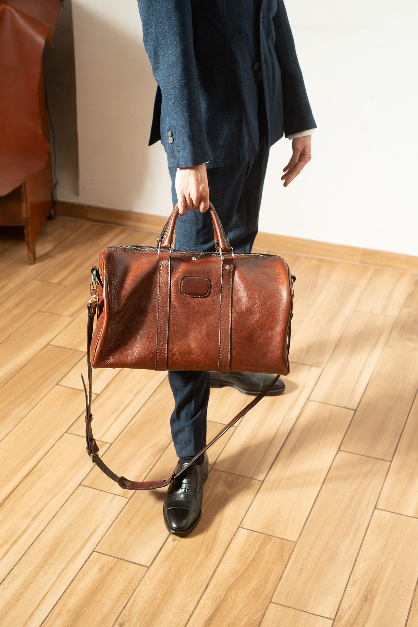- La sacca “weekend” in cuoio volonato primo fiore conciato al vegetale è completamente tagliata e realizzata a mano, la bellezza è la qualità del cuoio che le conferisce un aspetto senza tempo elegante, comoda, funzionale ha due pratiche maniglie ed una tracolla removibile e regolabile.