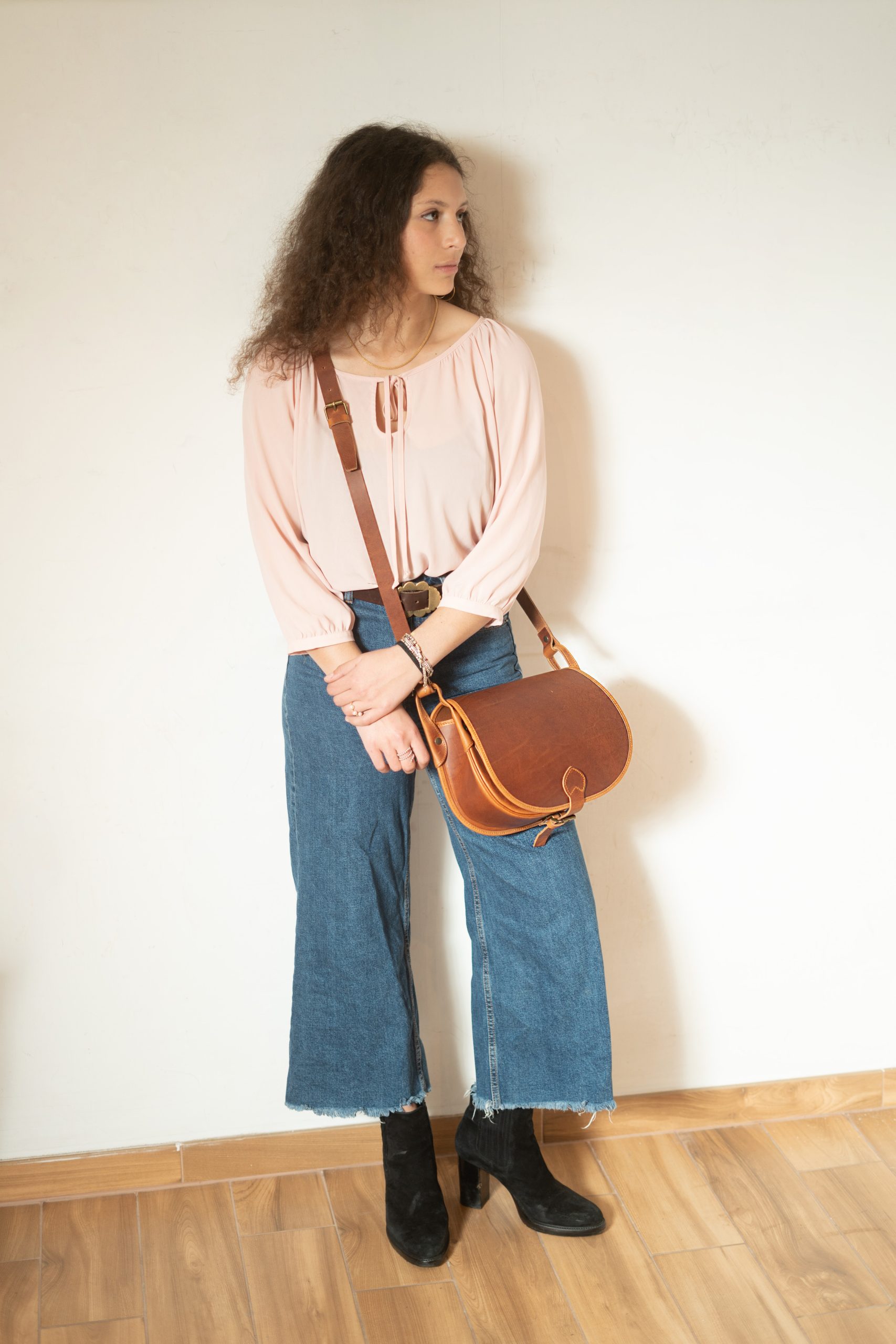 - La Saddler Bag o Borsa Postina realizzata in uno splendido cuoio “schiarente” ossia il cuoio ingrassato con effetto schiarente chiamato appunto effetto pull-up, la principale caratteristica e che il cuoio usato è trattato con particolari cere che conferiscono un tatto ‘setoso’ a questo cuoio.