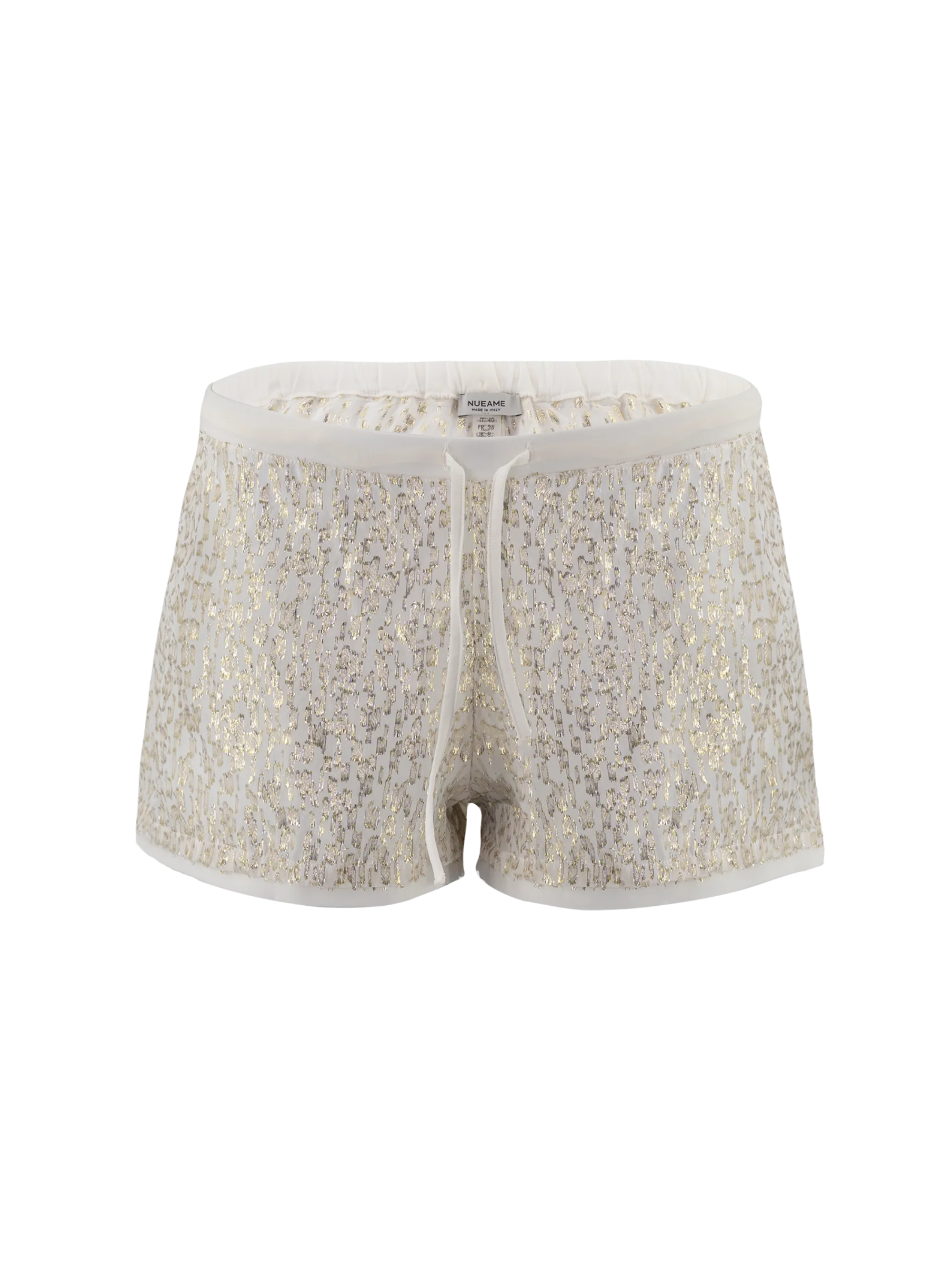 Gli shorts, realizzati in fil coupé di seta dai raffinati bagliori gold con motivo animalier e chiffon di seta stretch, rappresentano un capo che unisce eleganza e modernità. La vita elastica con coulisse completa il capo assicurando il massimo comfort.