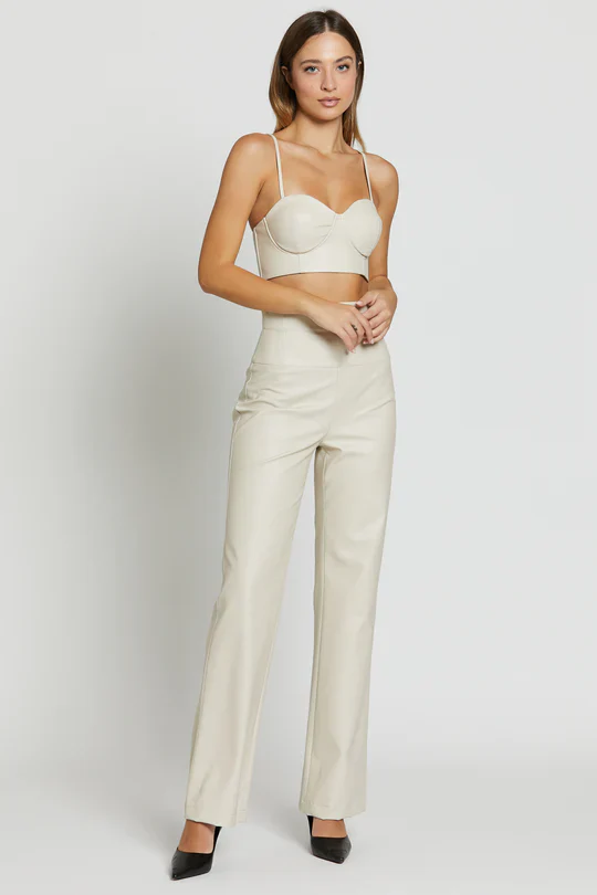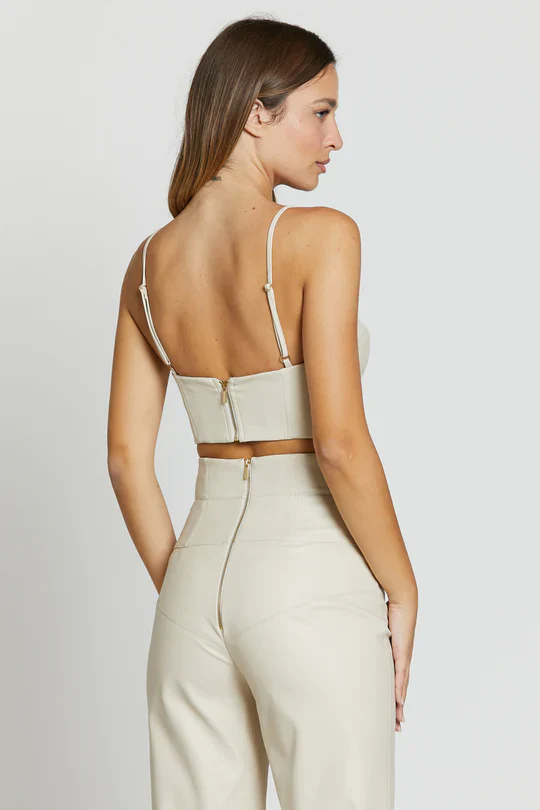 Leather Crop realizzato in eco pelle, questo crop top modello bustino รจ dotato di coppe imbottite per darti una silhouette perfetta. Le bretelline regolabili ti offrono una vestibilitร su misura. Aggiungi un tocco di eleganza al tuo look con questo capo versatile e sostenibile.