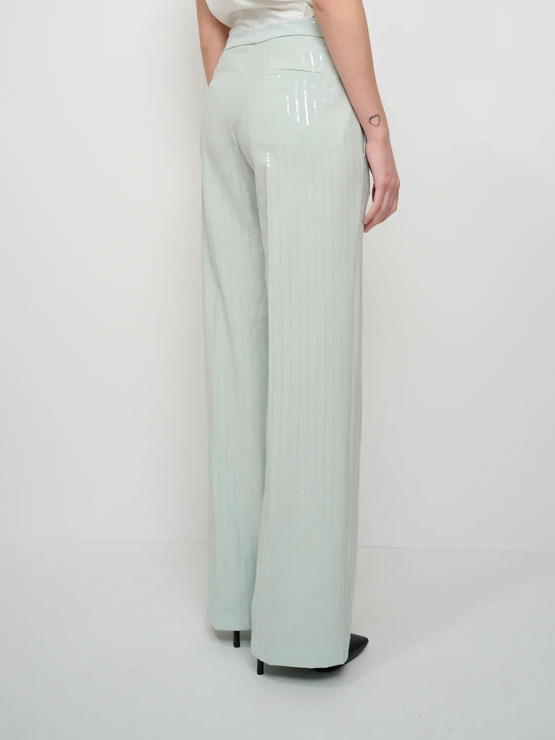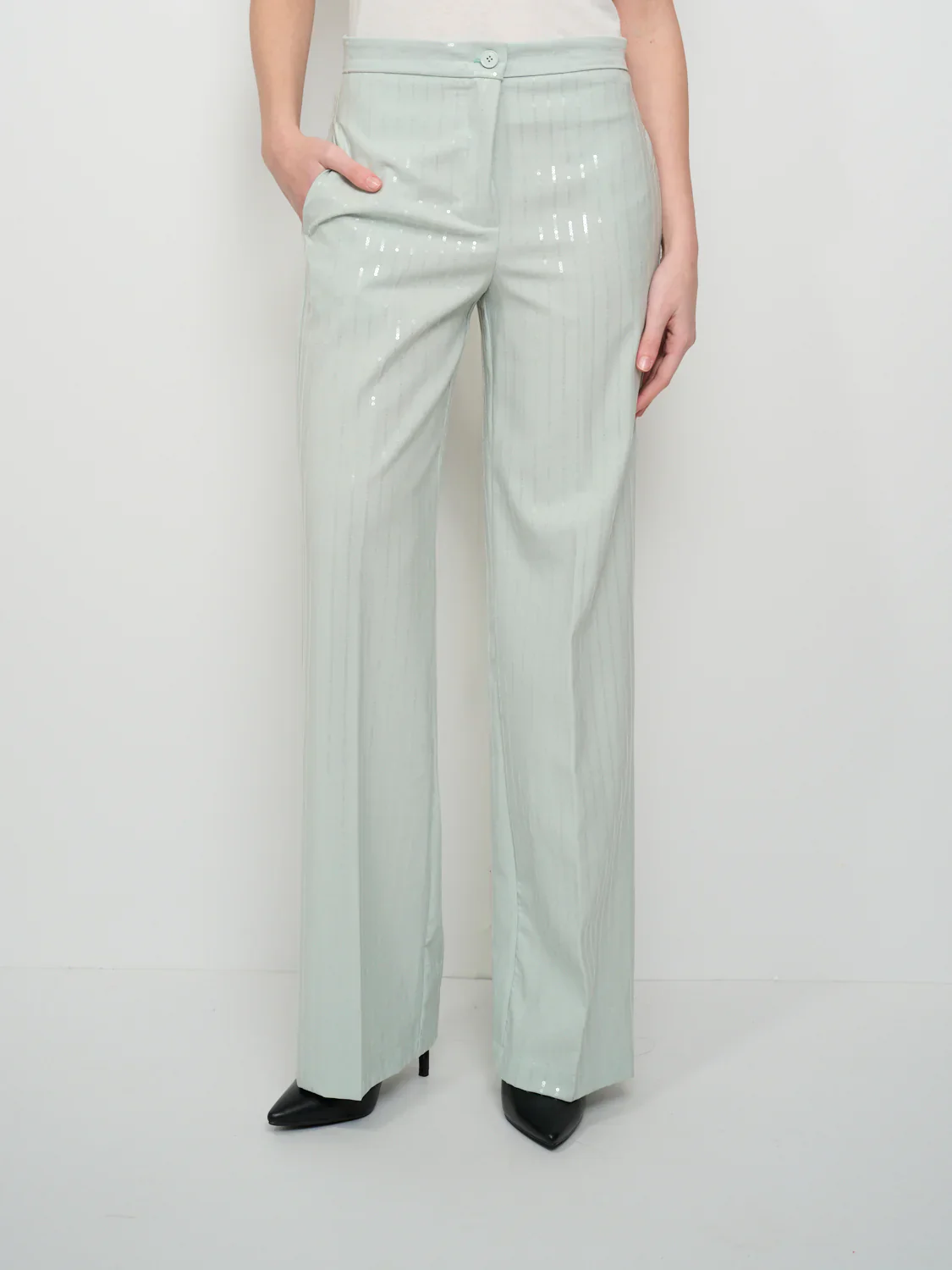 VICOLO – PANTALONE LARGO MICRO PAILLETTES – VERDE ACQUA